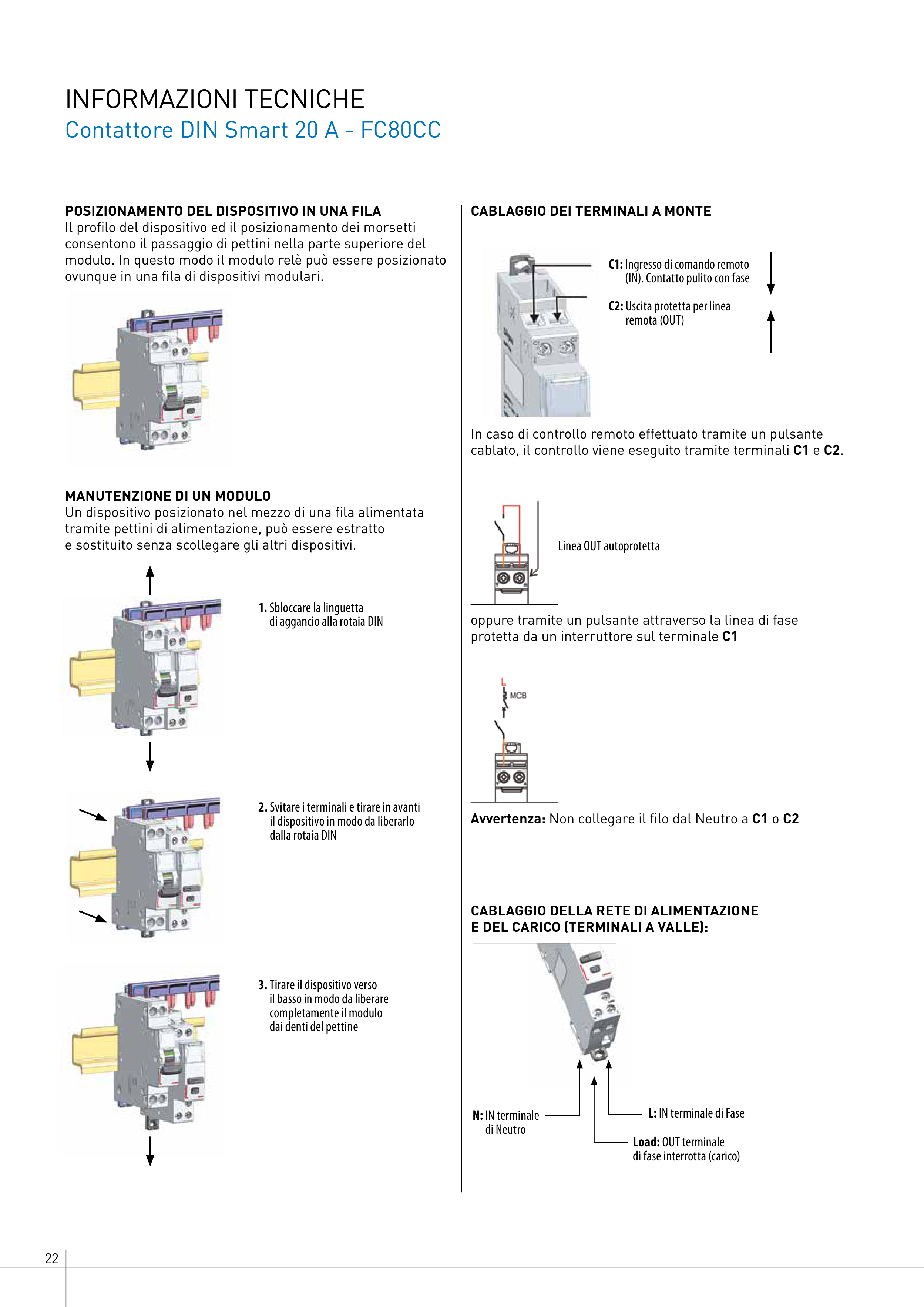 Avvertenza: Non collegare il filo dal Neutro a C1 o C2