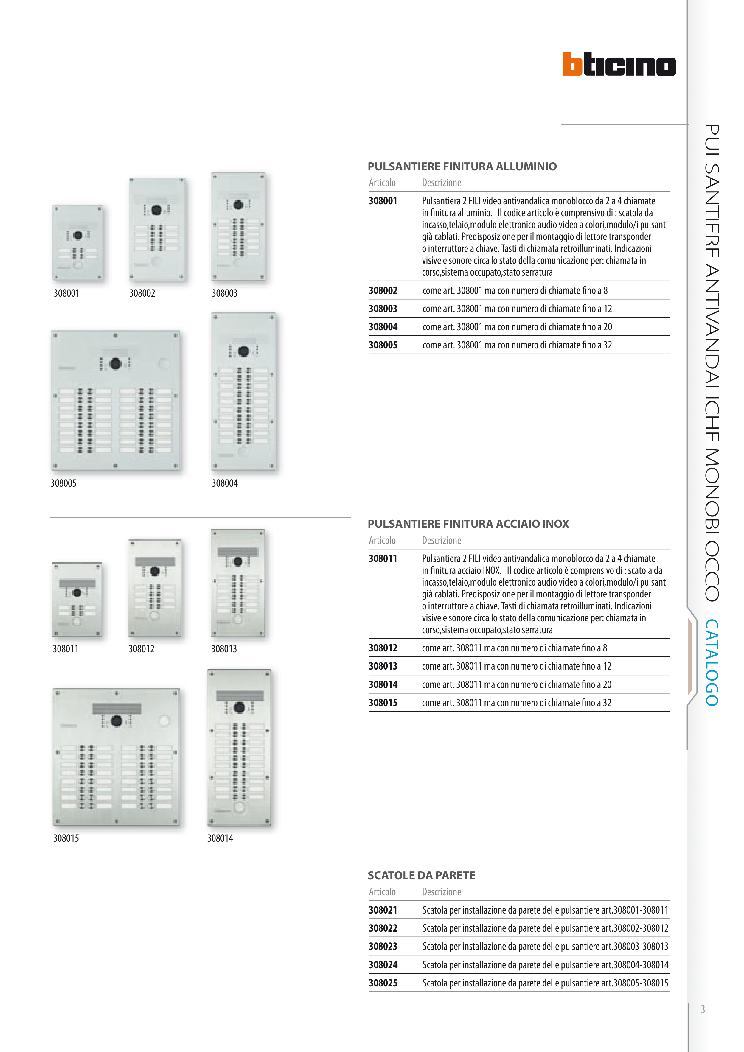 Catalogue BTicino: Video Intercom Button Panels Linea 300 2010, page 3 of 6