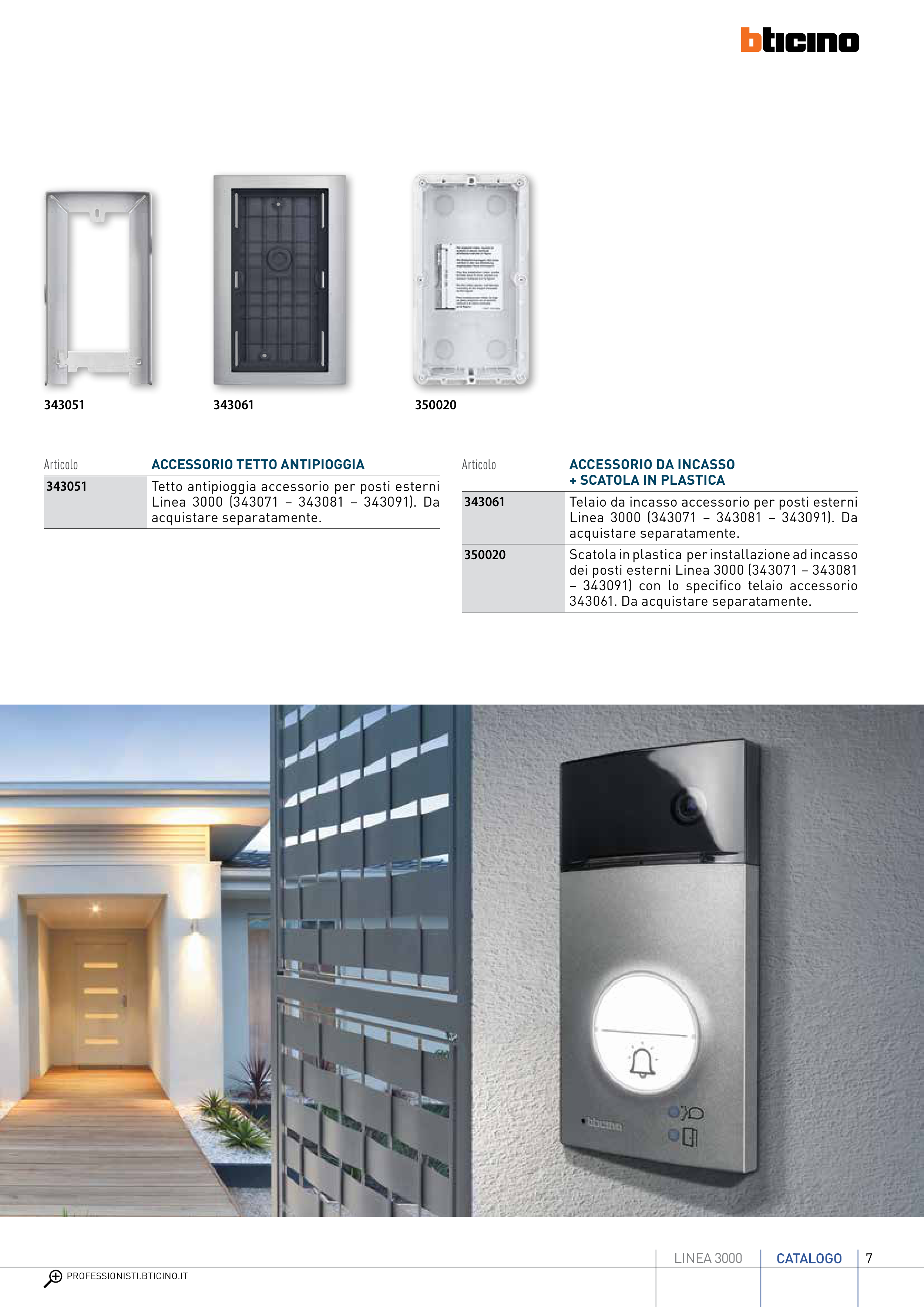 Catalogue BTicino: Video Intercom Button Panels Linea 3000 2016, page 7 of 16