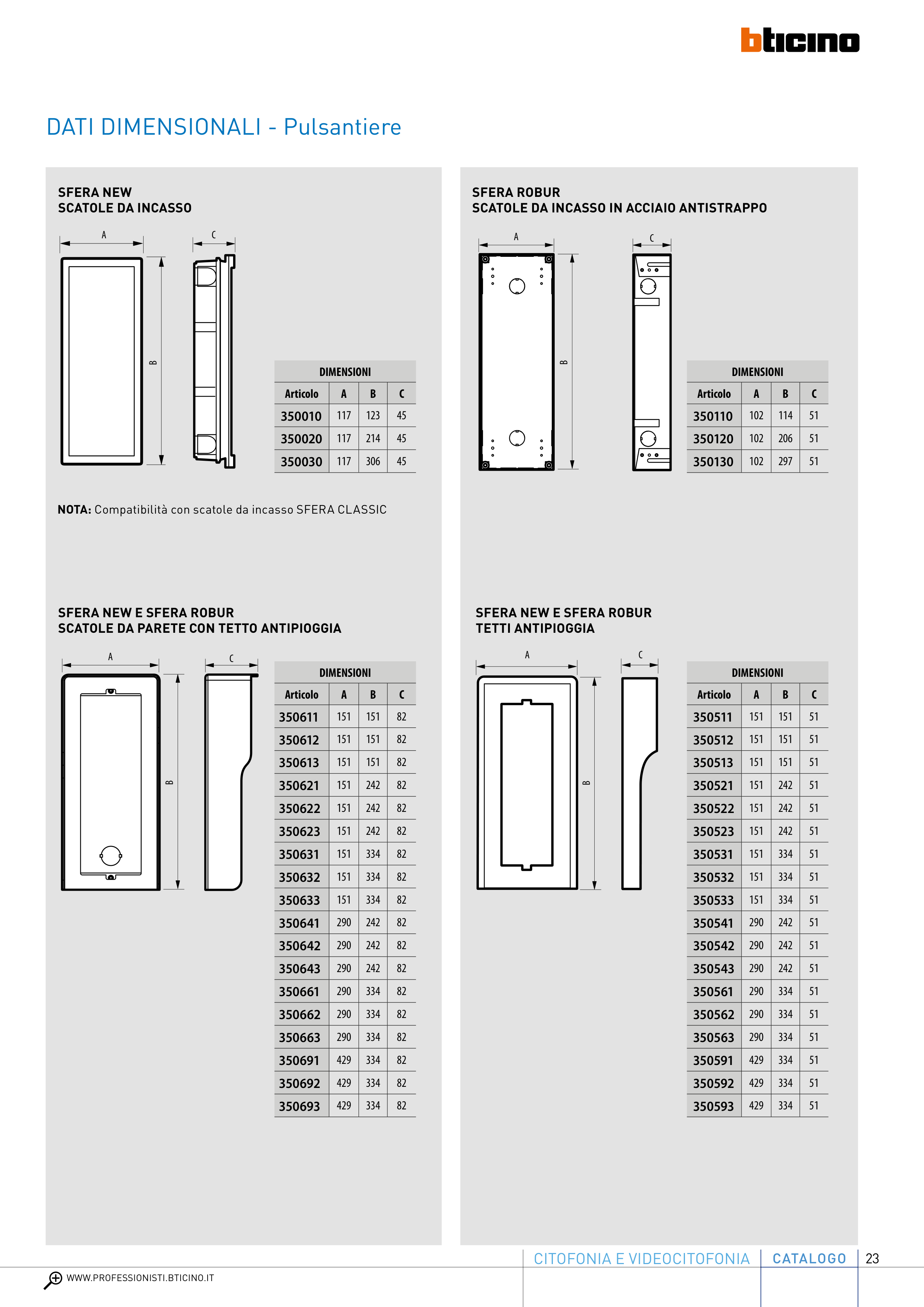 DATI DIMENSIONALI - Pulsantiere
