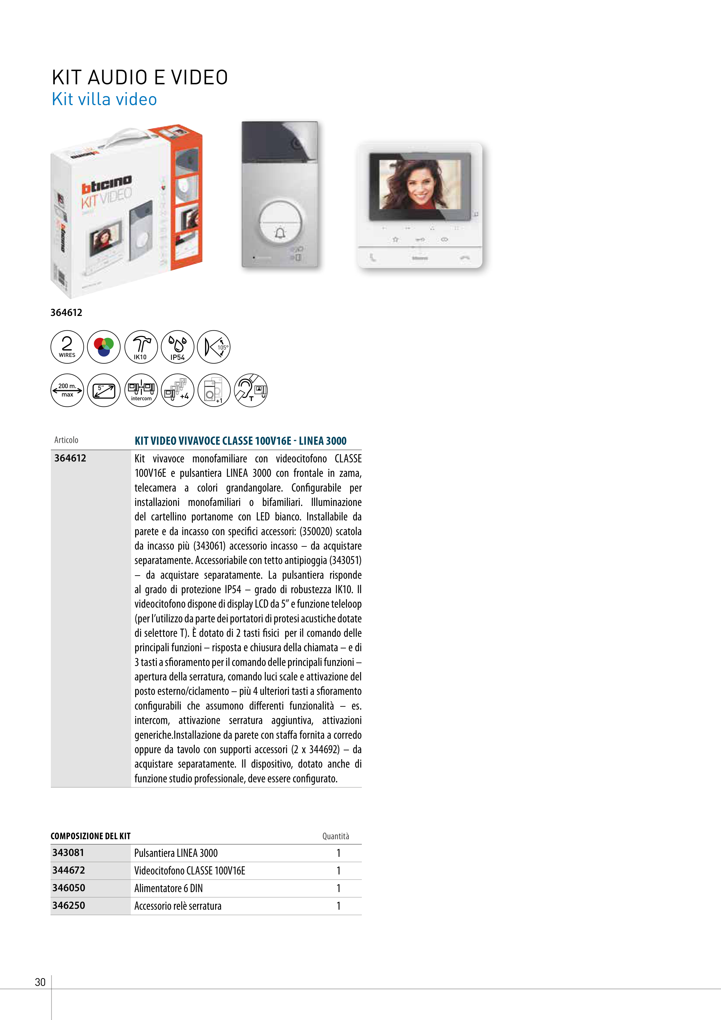 KIT VIDEO VIVAVOCE CLASSE 100V16E - LINEA 3000