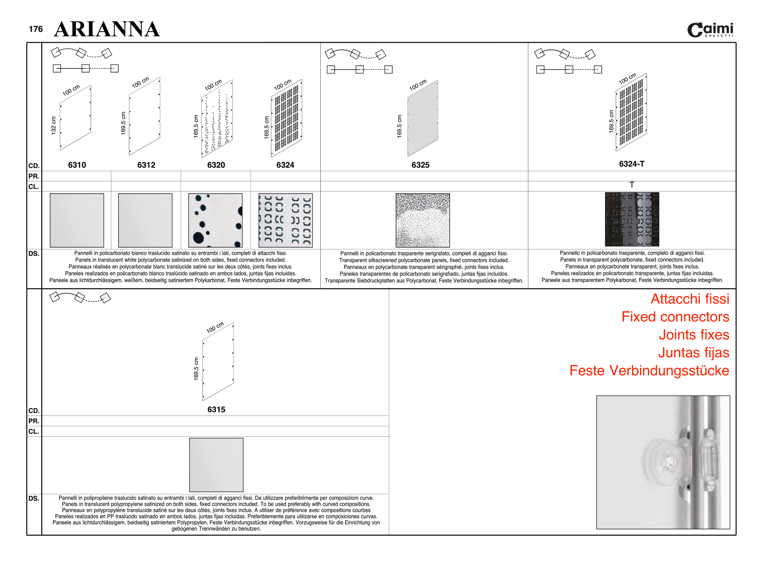 Transparent silkscreened polycarbonate panels, fixed connectors included.