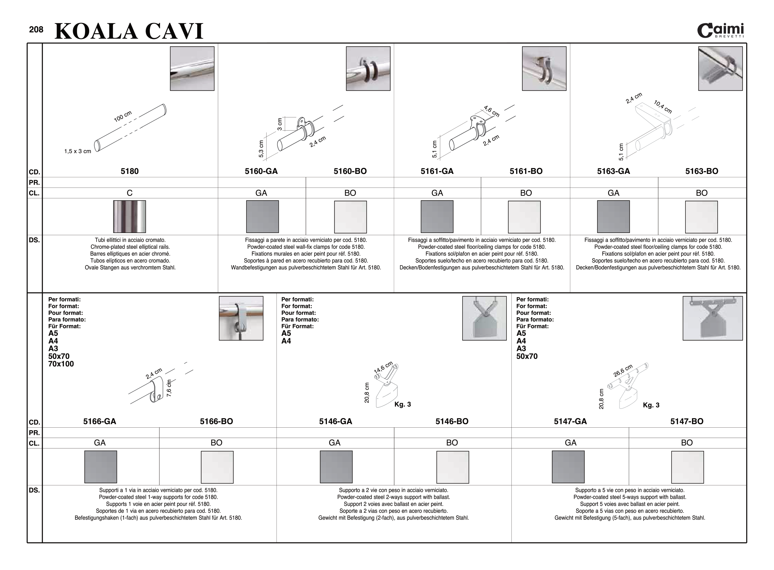Soportes à pared en acero recubierto para cod. 5180.