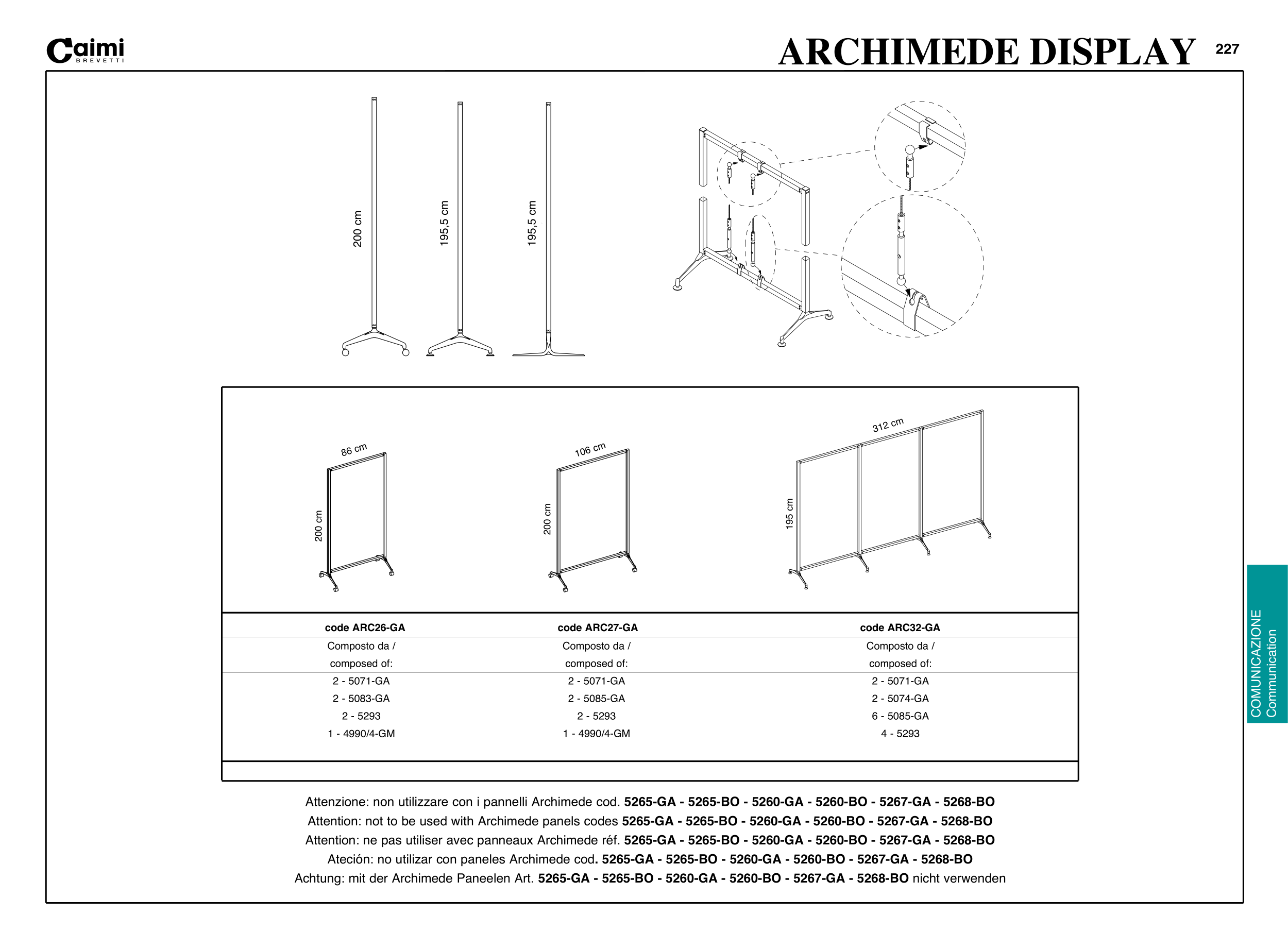 Achtung: mit der Archimede Paneelen Art. 5265-GA - 5265-BO - 5260-GA - 5260-BO - 5267-GA - 5268-BO nicht verwenden