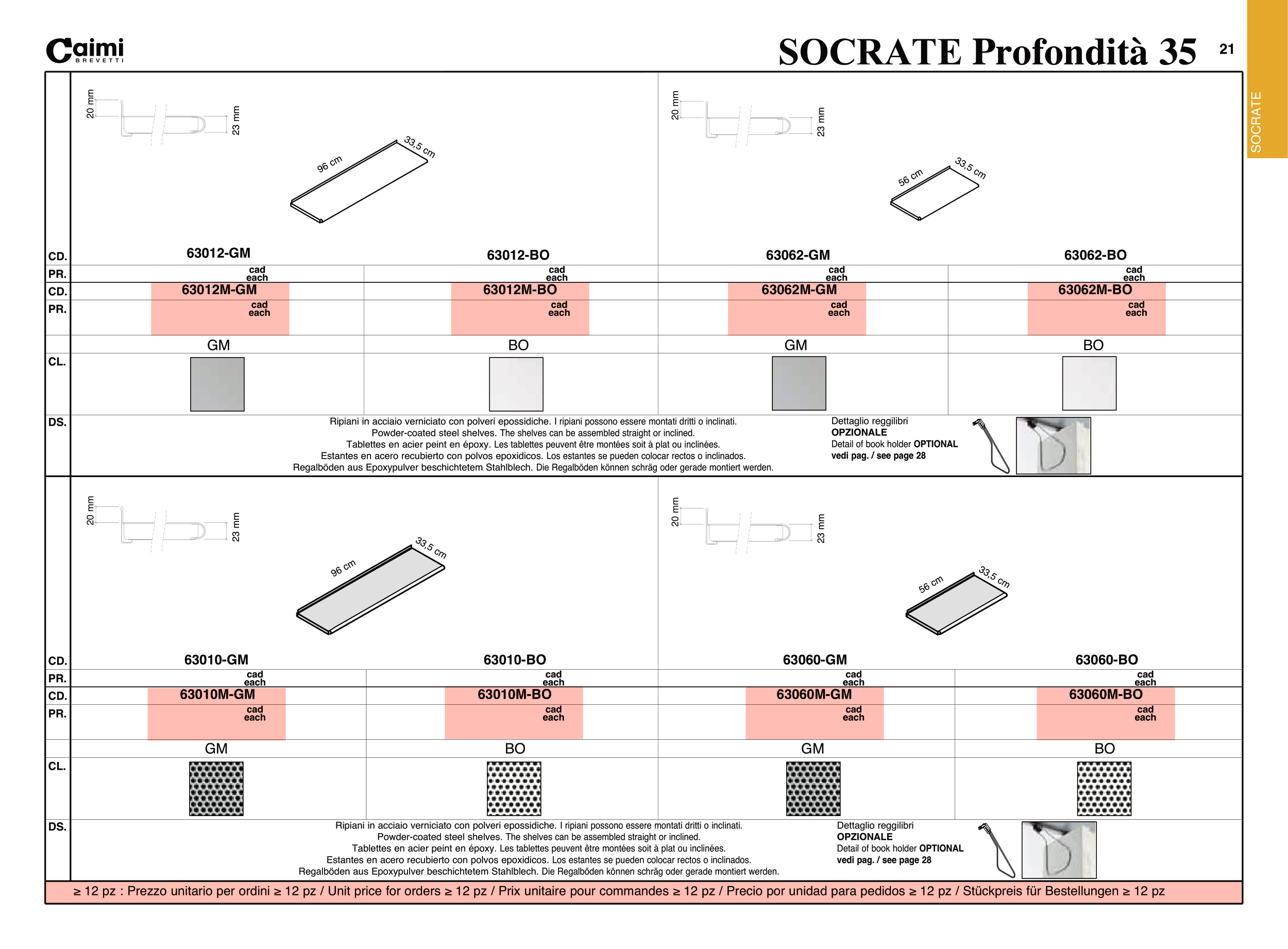 ≥ 12 pz : Prezzo unitario per ordini ≥ 12 pz / Unit price for orders ≥ 12 pz / Prix unitaire pour commandes ≥ 12 pz / Precio por unidad para pedidos ≥ 12 pz / Stückpreis für Bestellungen ≥ 12 pz