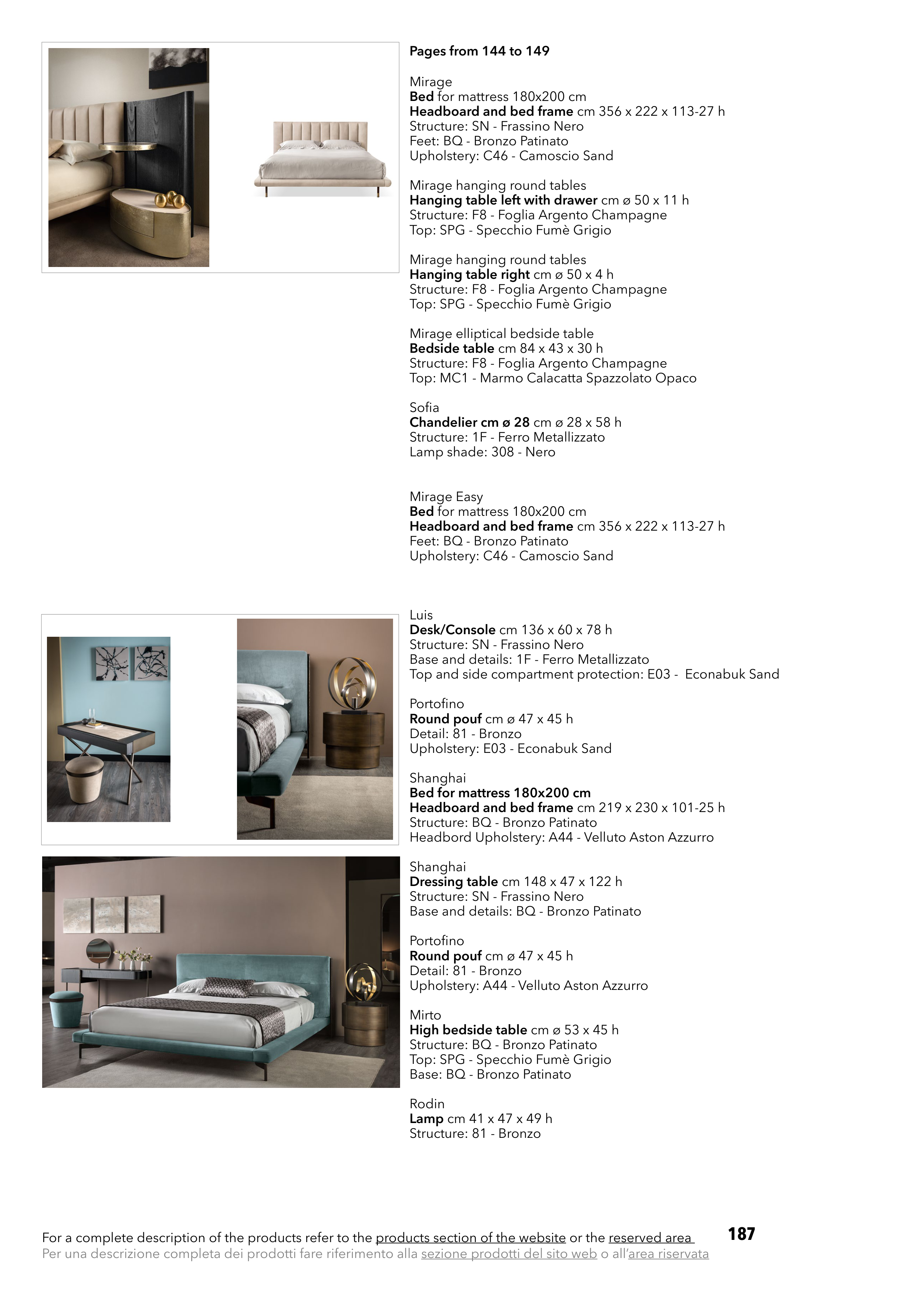 For a complete description of the products refer to the products section of the website or the reserved area