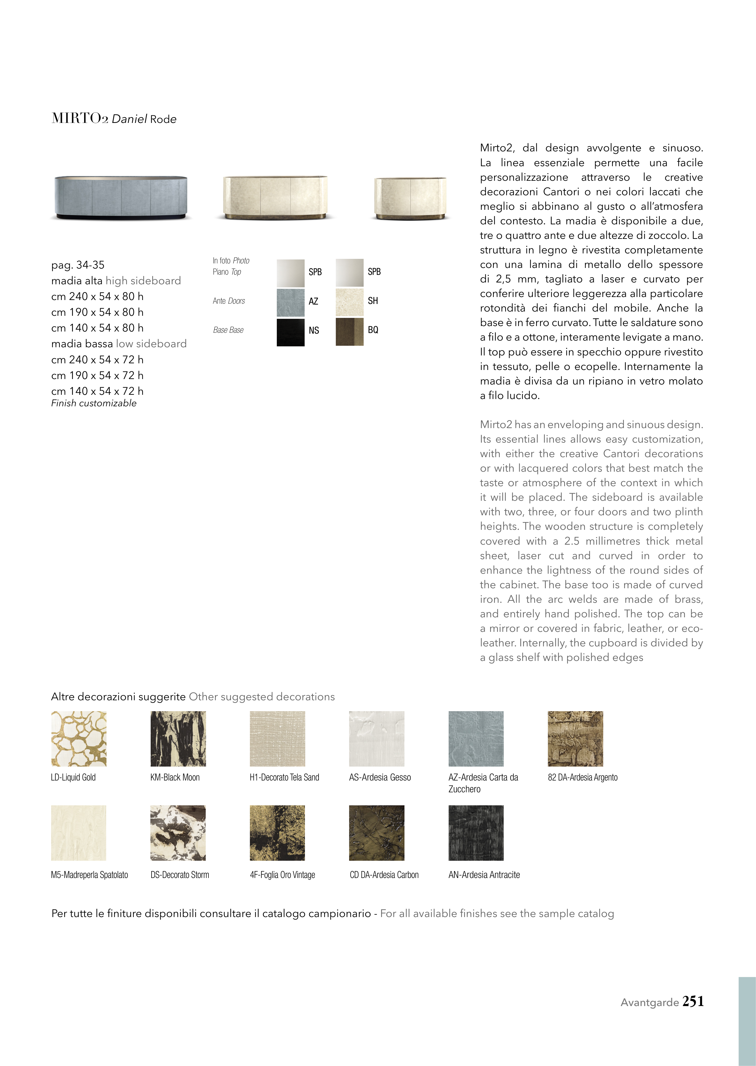 Per tutte le finiture disponibili consultare il catalogo campionario - For all available finishes see the sample catalog