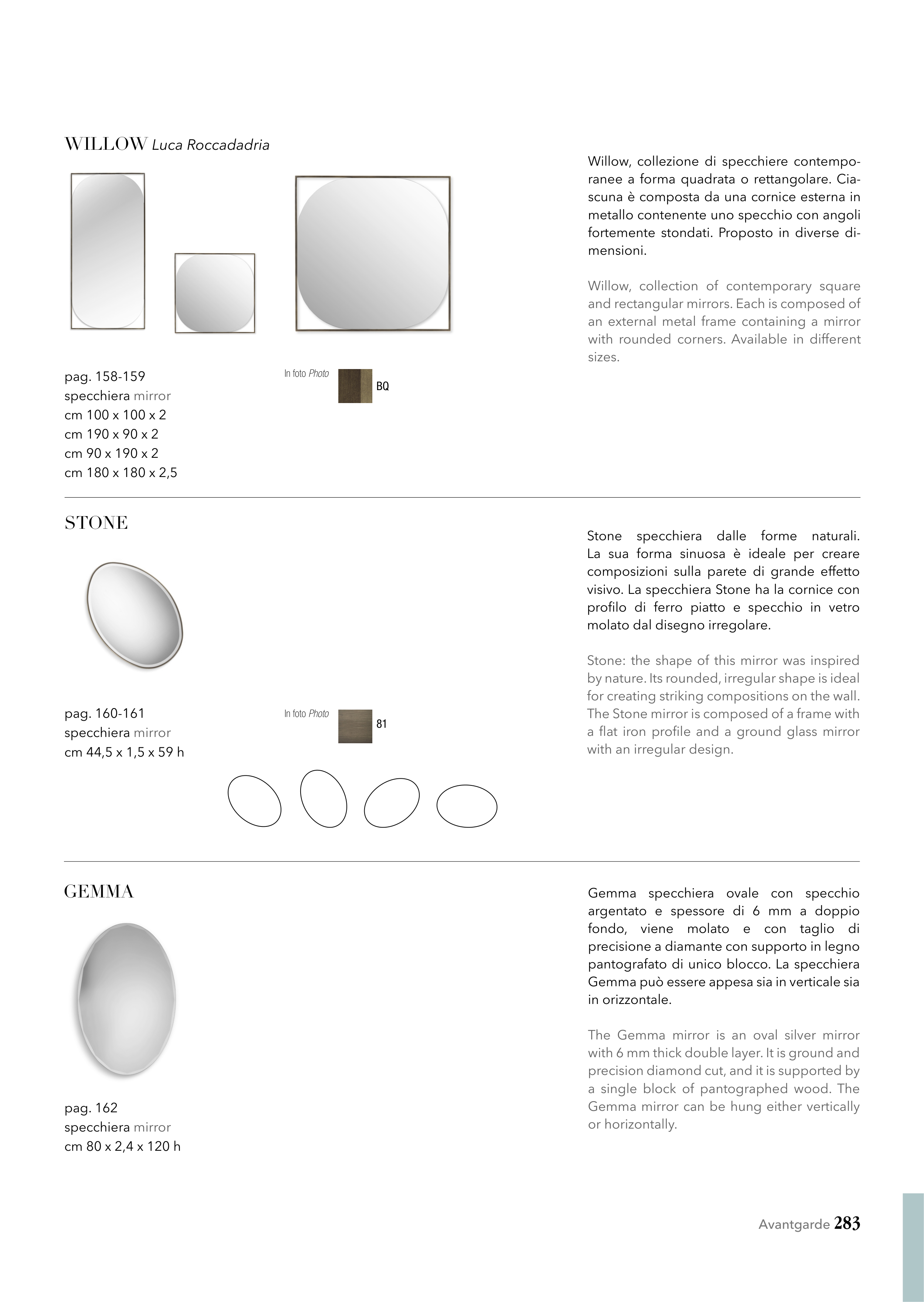 Willow, collezione di specchiere contempo-