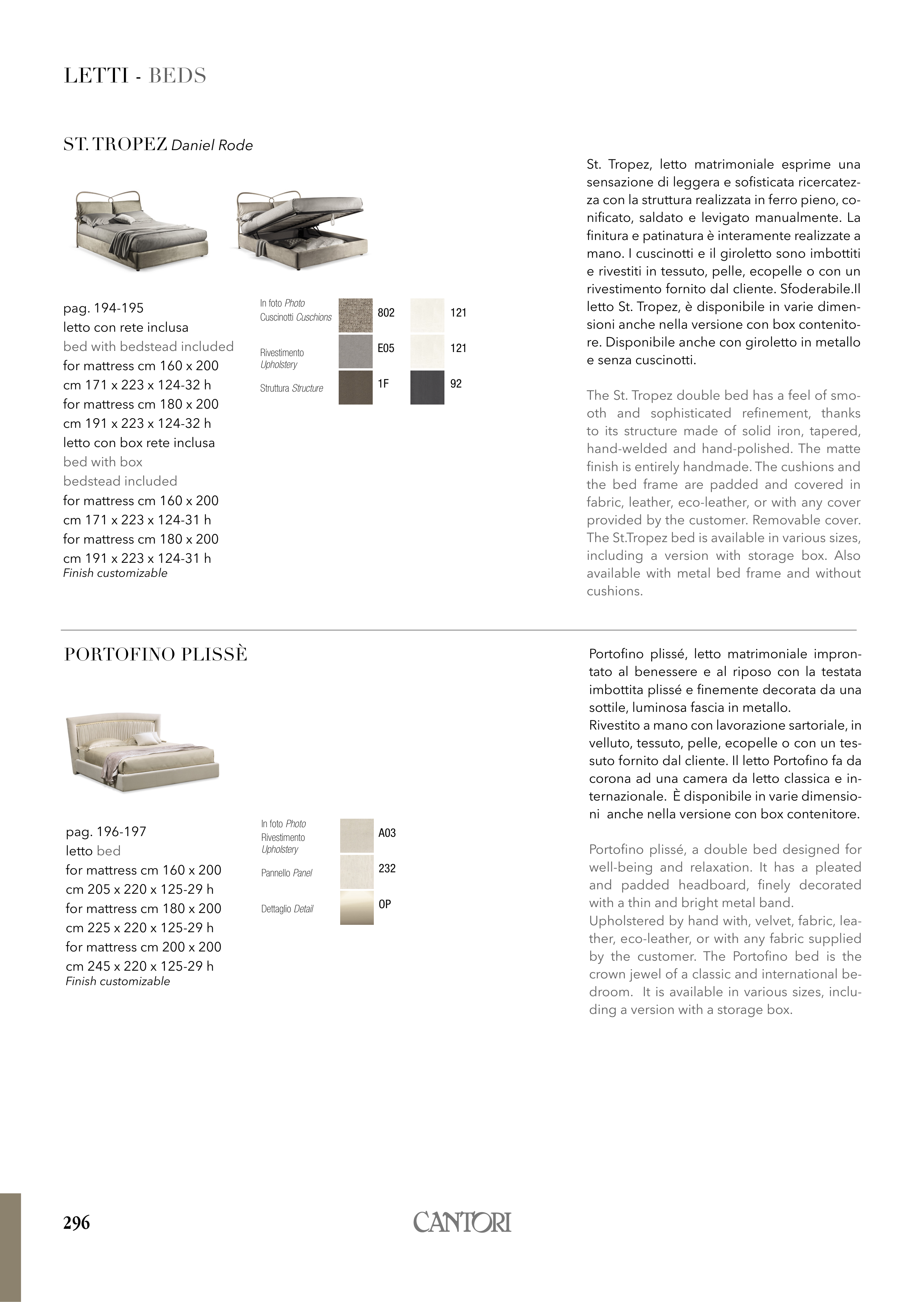by the customer. The Portofino bed is the