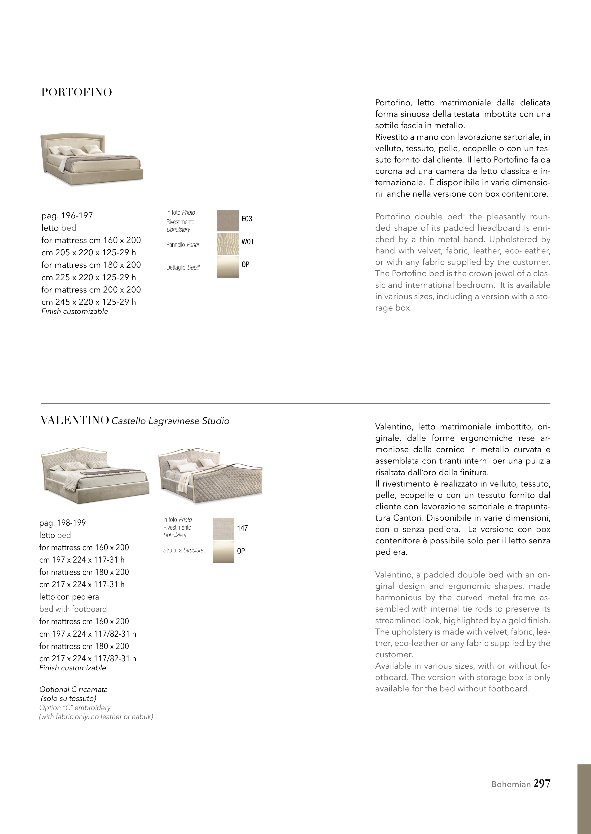 Valentino, letto matrimoniale imbottito, ori-