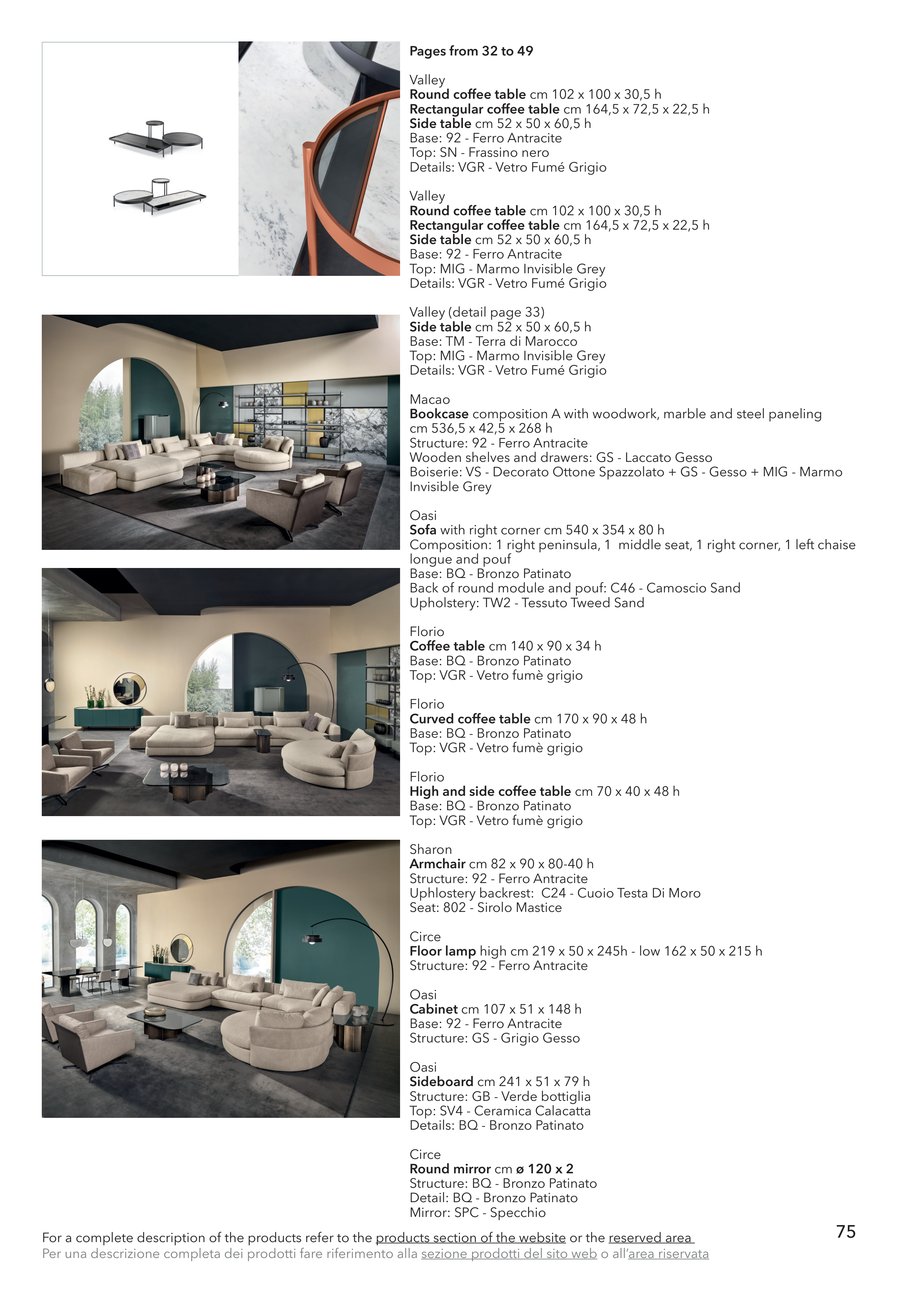 For a complete description of the products refer to the products section of the website or the reserved area