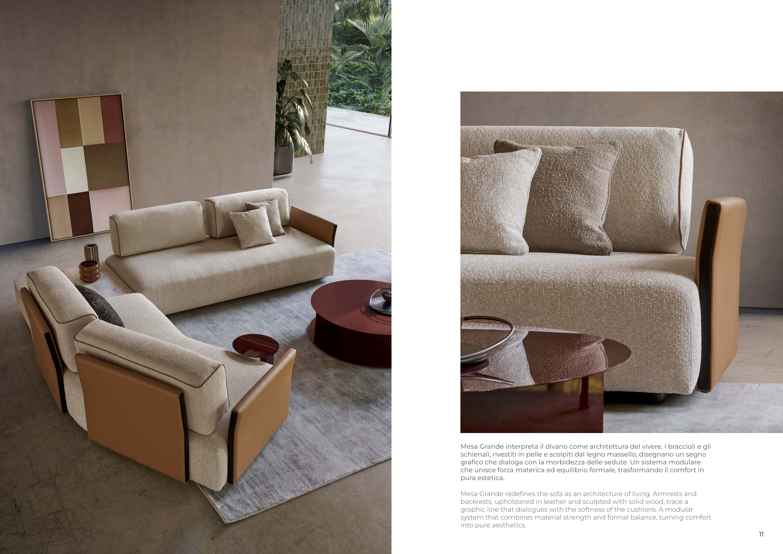 Mesa Grande interpreta il divano come architettura del vivere. I braccioli e gli