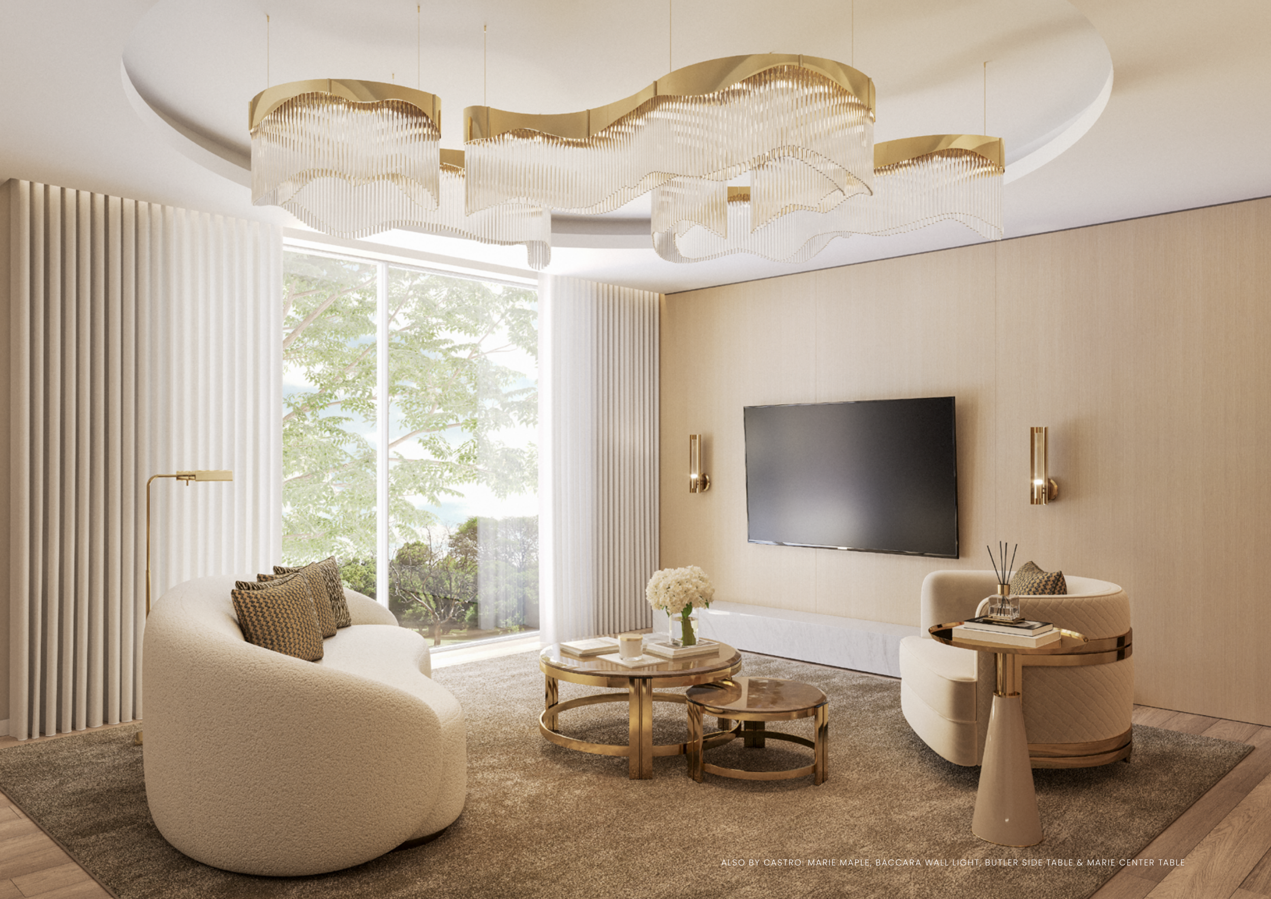 ALSO BY CASTRO: MARIE MAPLE, BACCARA WALL LIGHT, BUTLER SIDE TABLE & MARIE CENTER TABLE