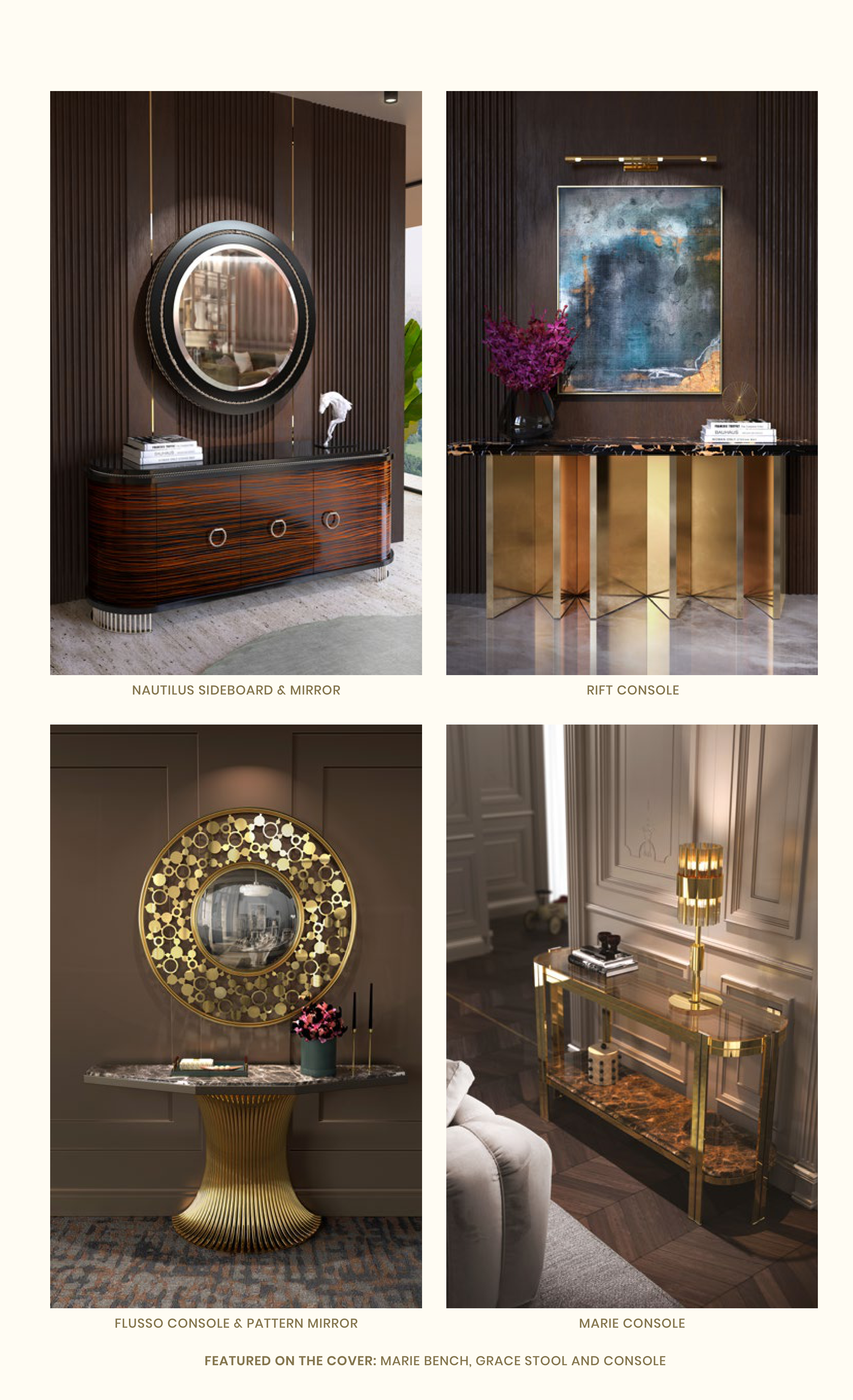 FEATURED ON THE COVER: MARIE BENCH, GRACE STOOL AND CONSOLE