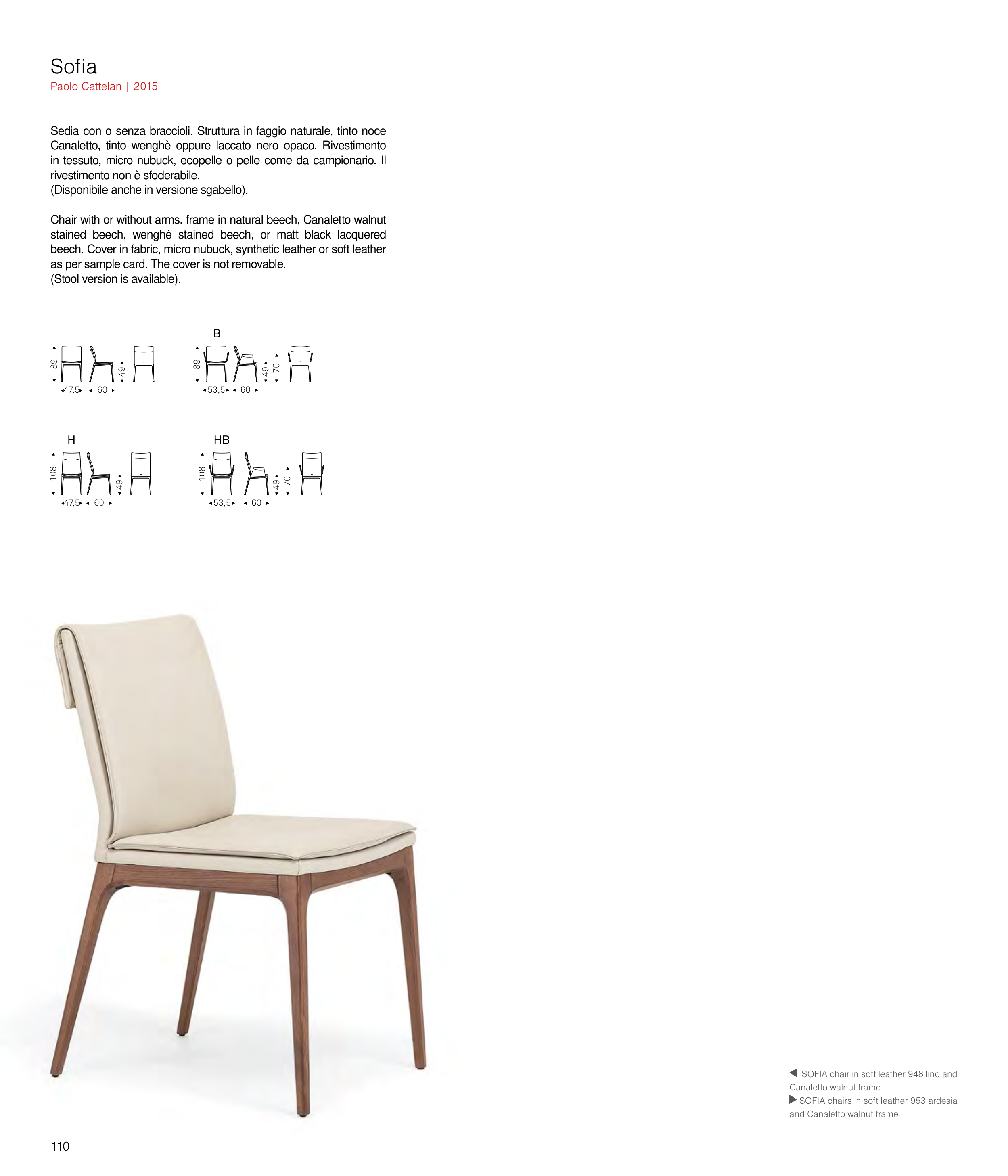 Sedia con o senza braccioli. Struttura in faggio naturale, tinto noce
