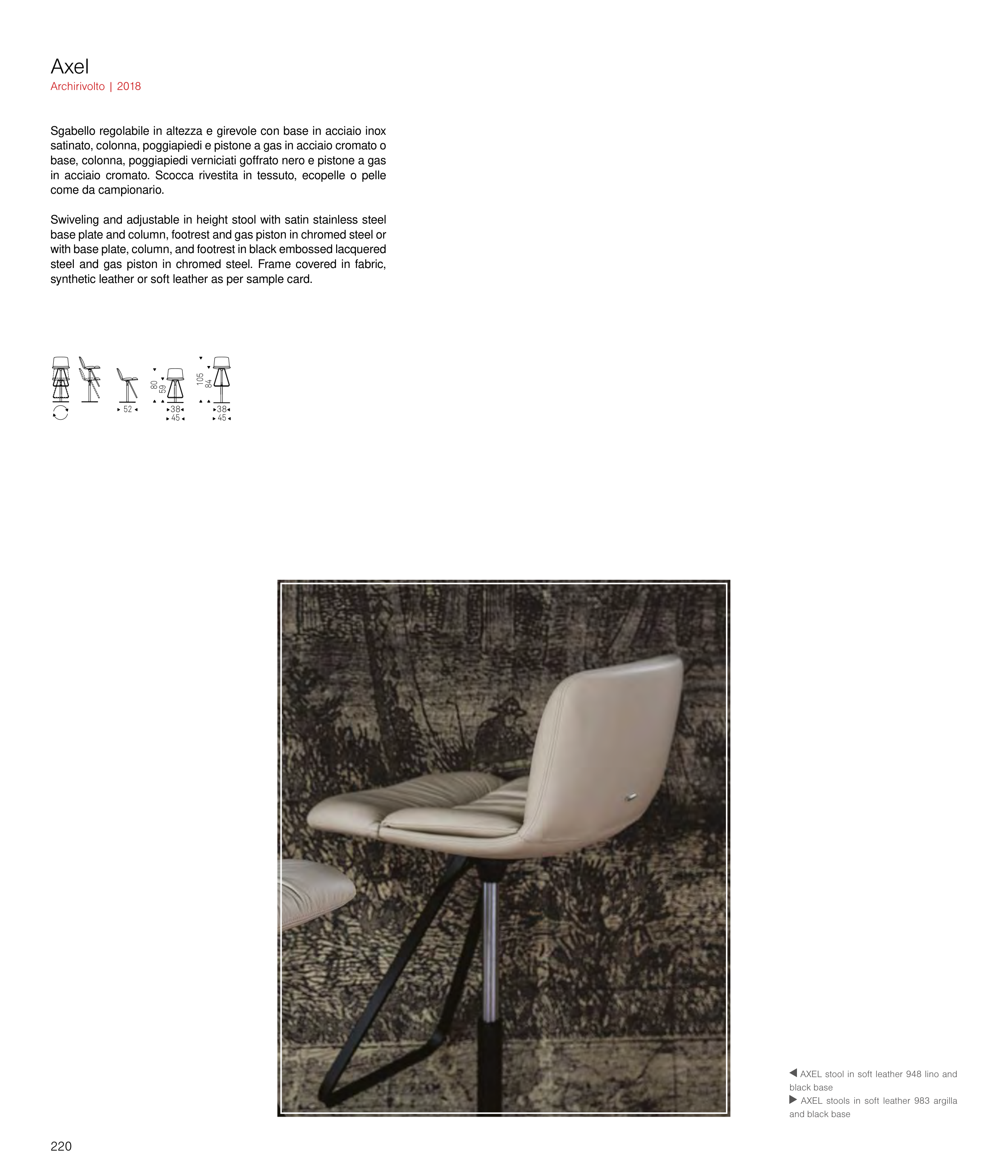 AXEL stool in soft leather 948 lino and
