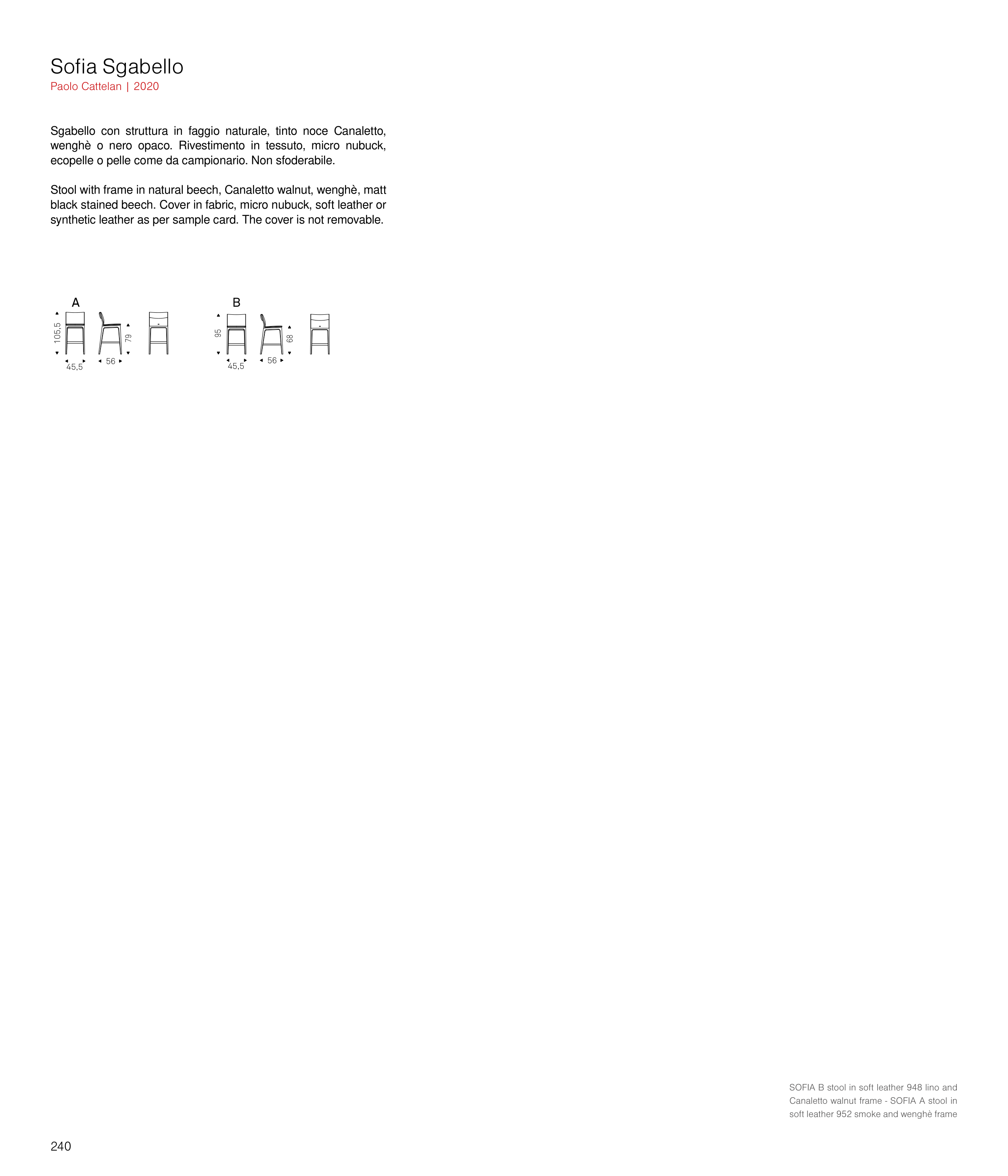 SOFIA B stool in soft leather 948 lino and