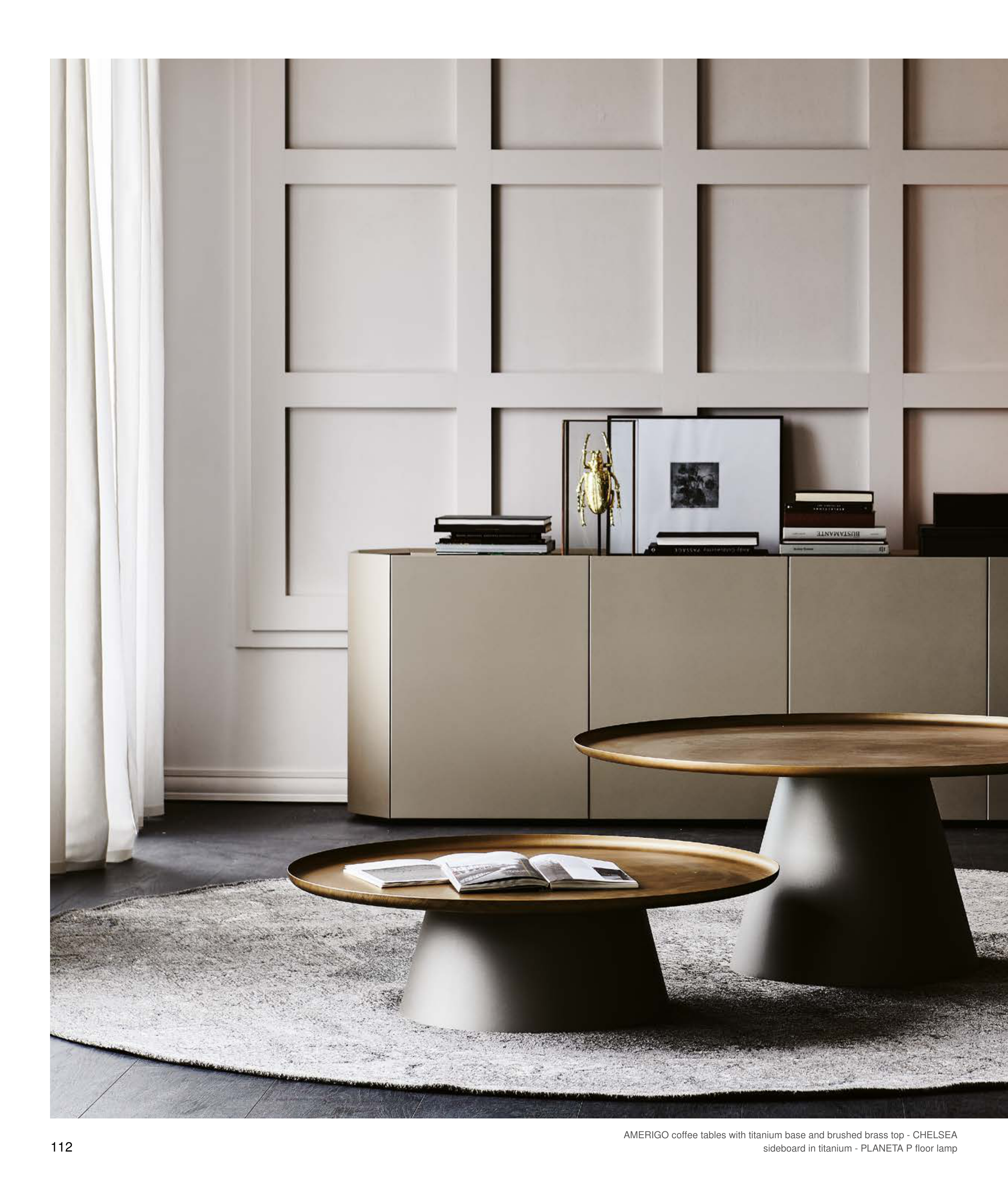AMERIGO coffee tables with titanium base and brushed brass top - CHELSEA