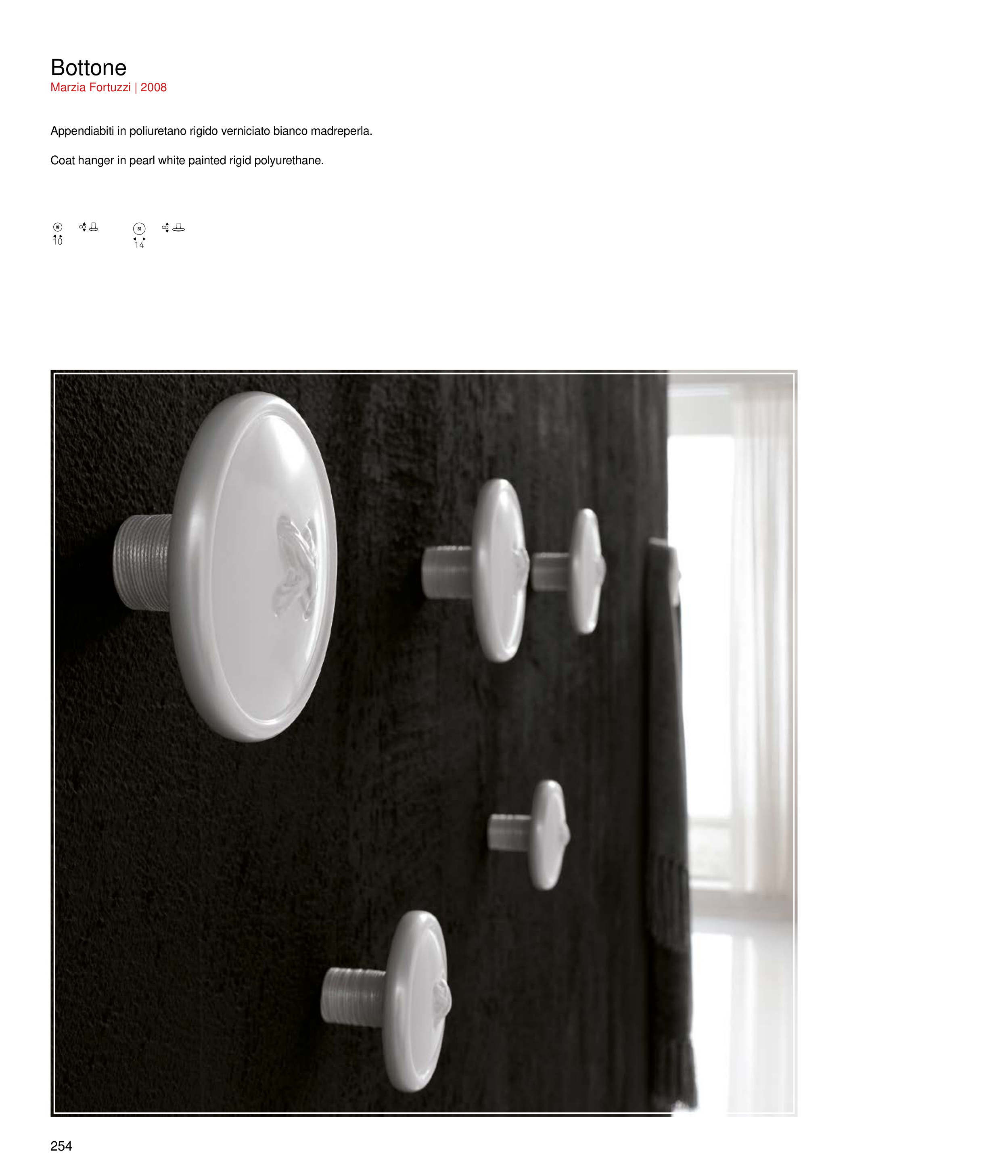 Appendiabiti in poliuretano rigido verniciato bianco madreperla.