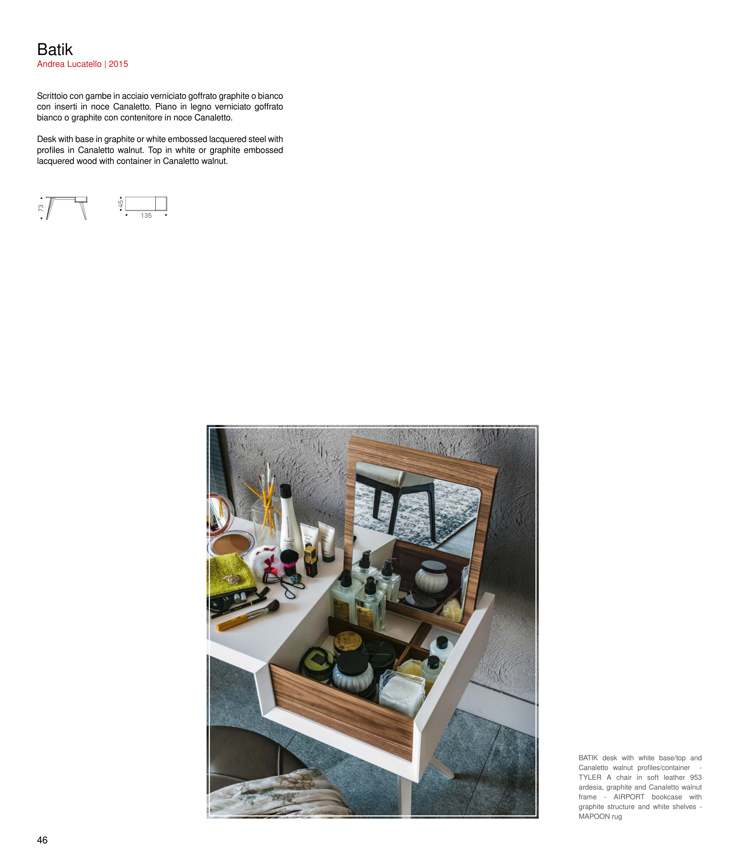 profiles in Canaletto walnut. Top in white or graphite embossed