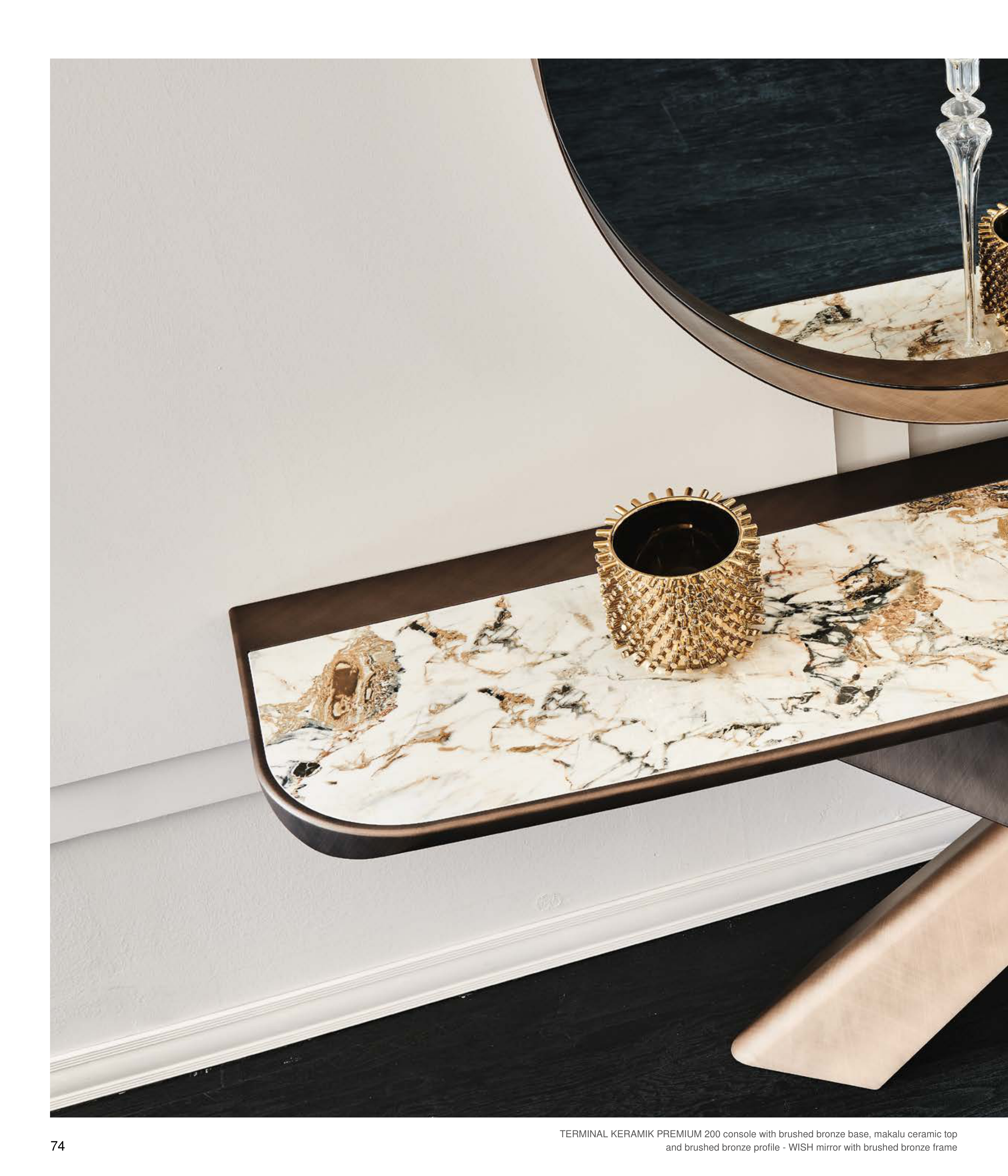 TERMINAL KERAMIK PREMIUM 200 console with brushed bronze base, makalu ceramic top