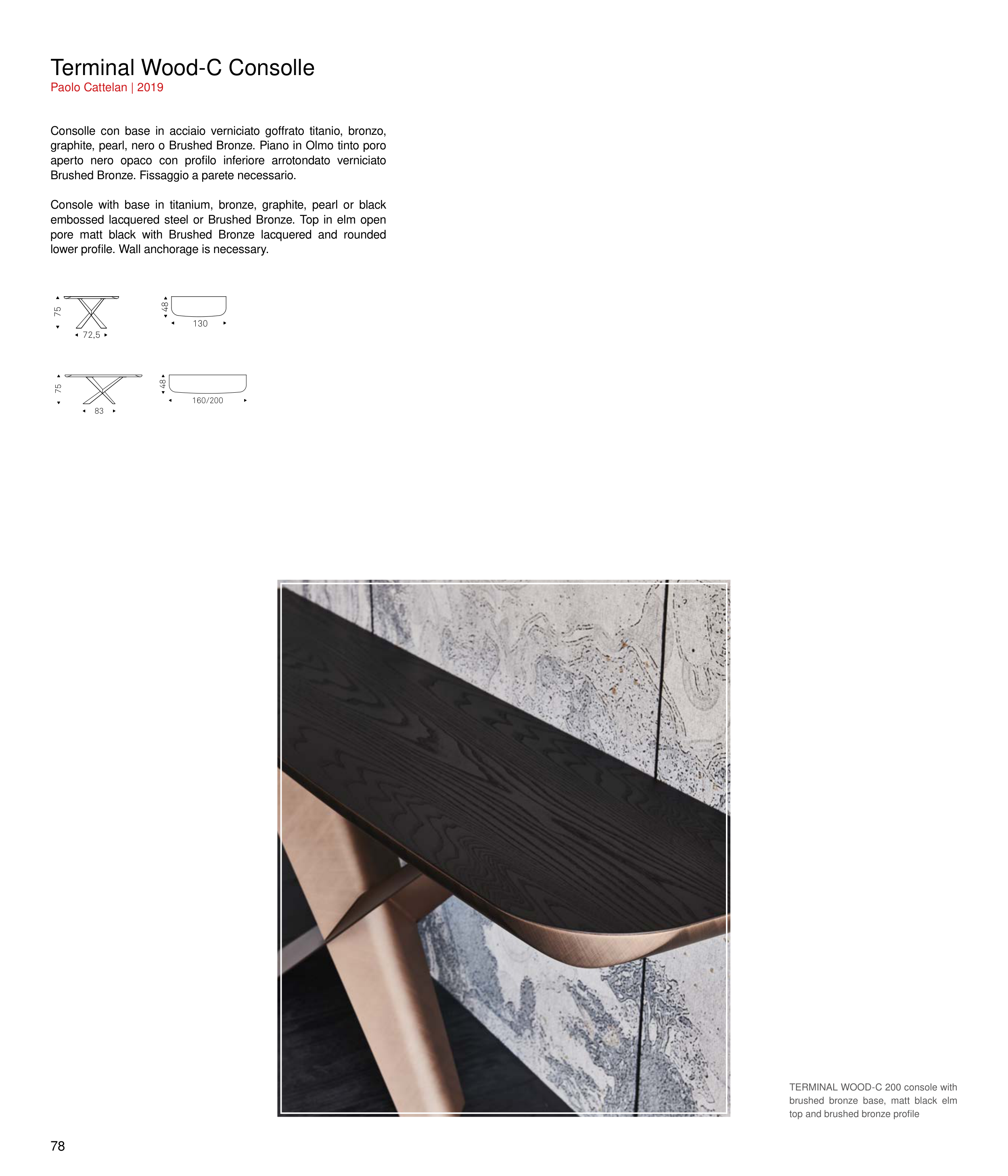 embossed lacquered steel or Brushed Bronze. Top in elm open