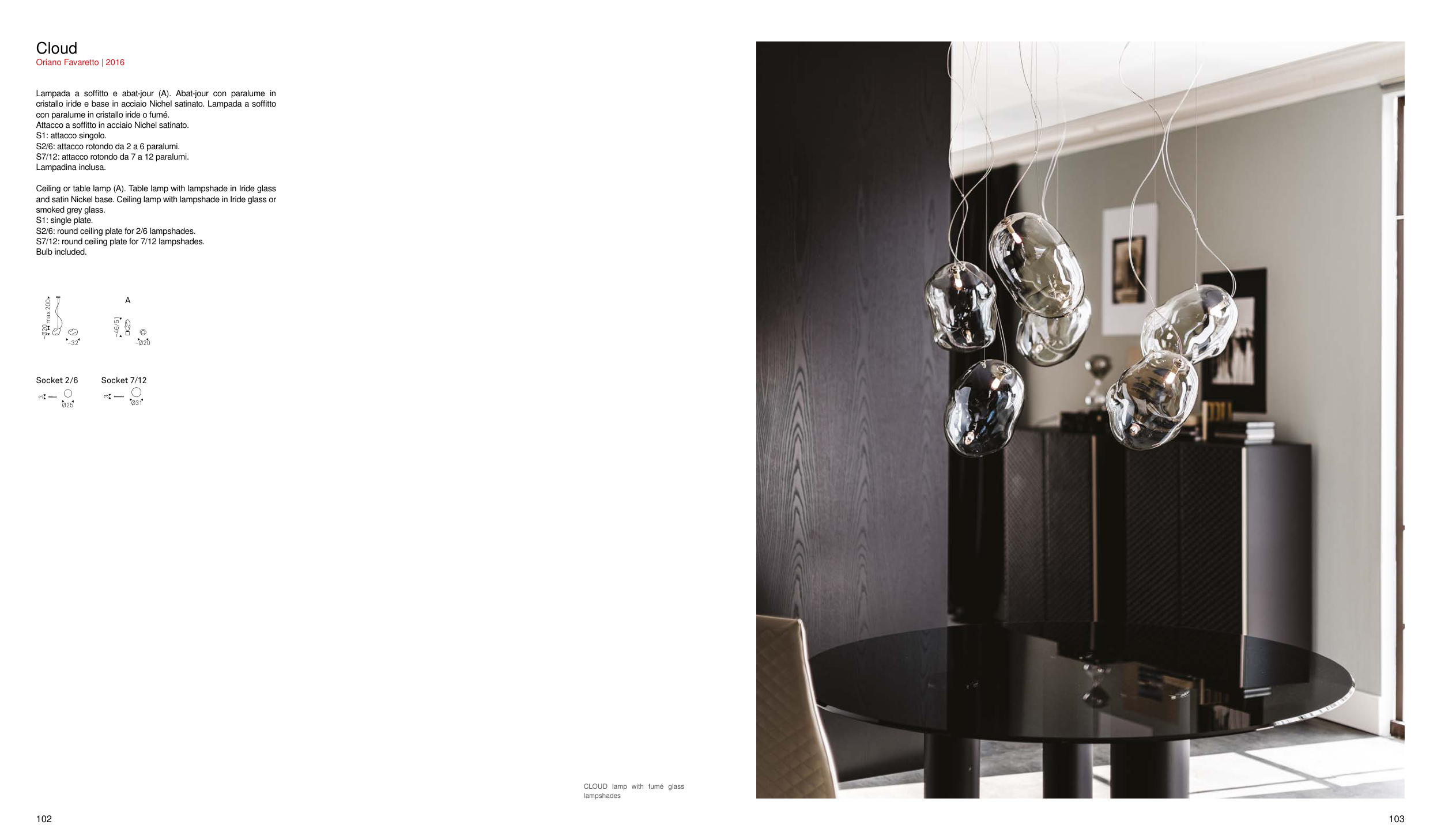 Ceiling or table lamp (A). Table lamp with lampshade in Iride glass