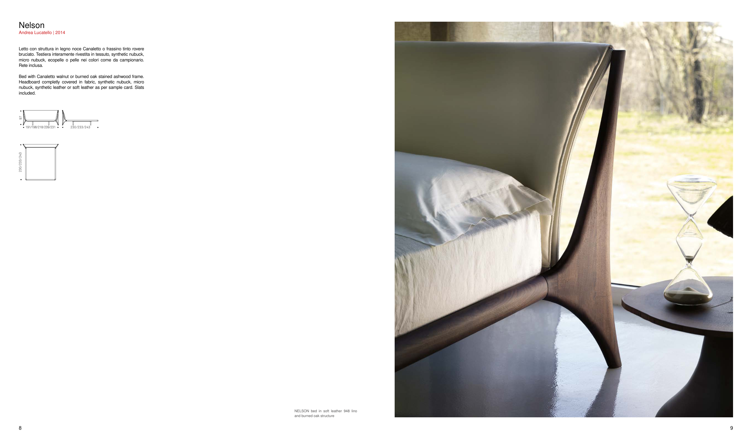 NELSON bed in soft leather 948 lino