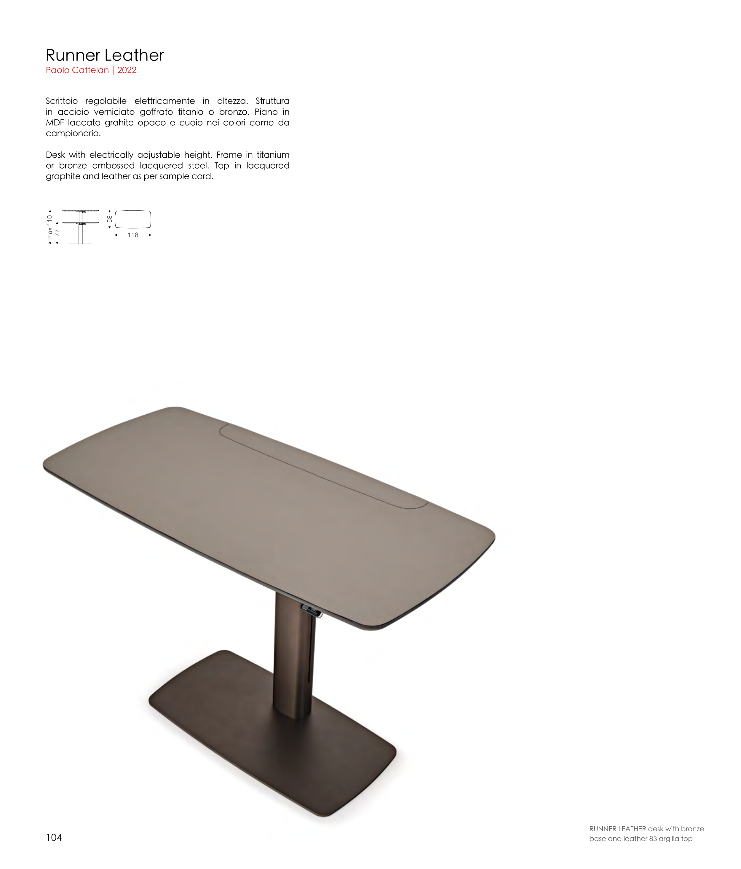 RUNNER LEATHER desk with bronze