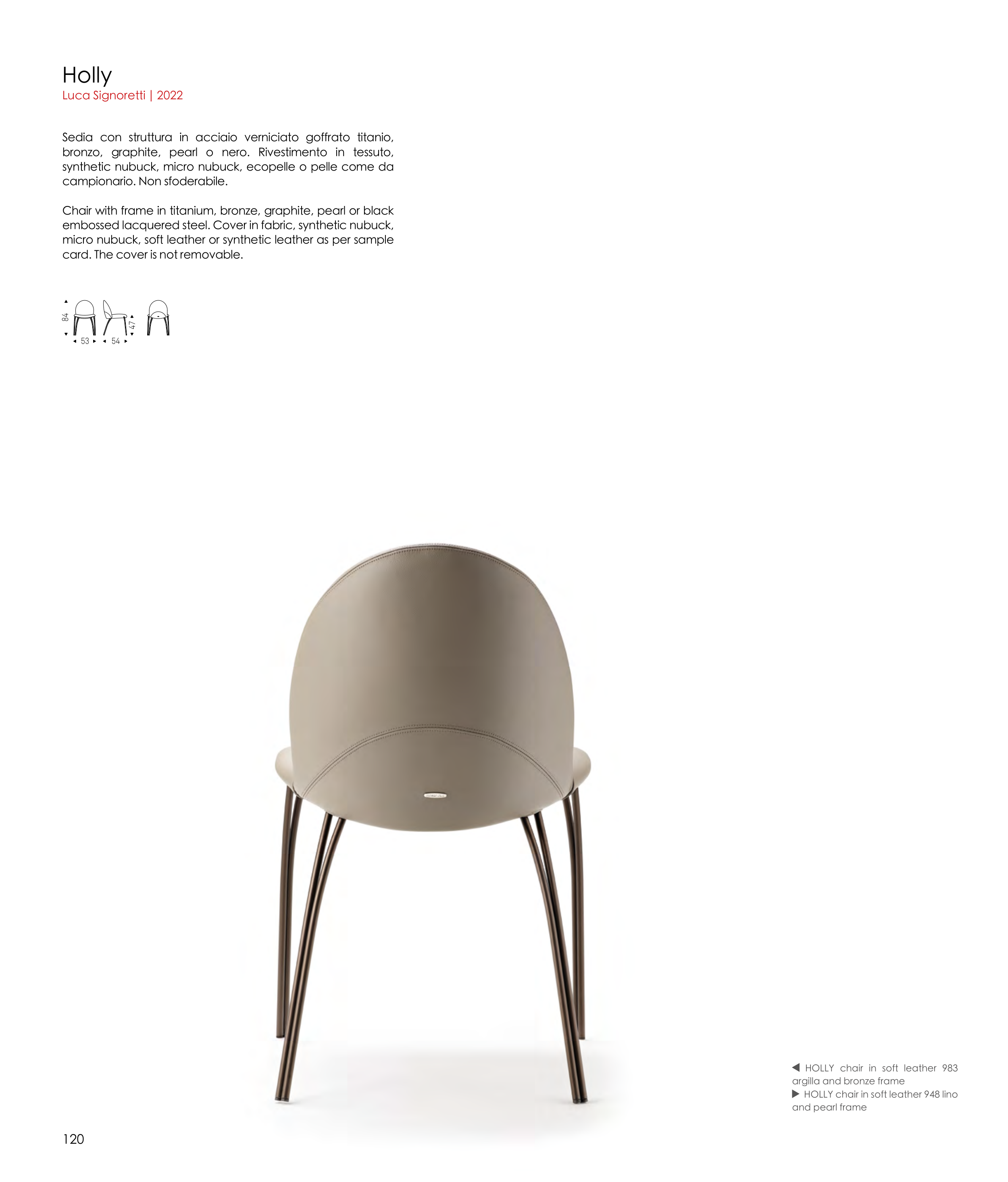 HOLLY chair in soft leather 948 lino