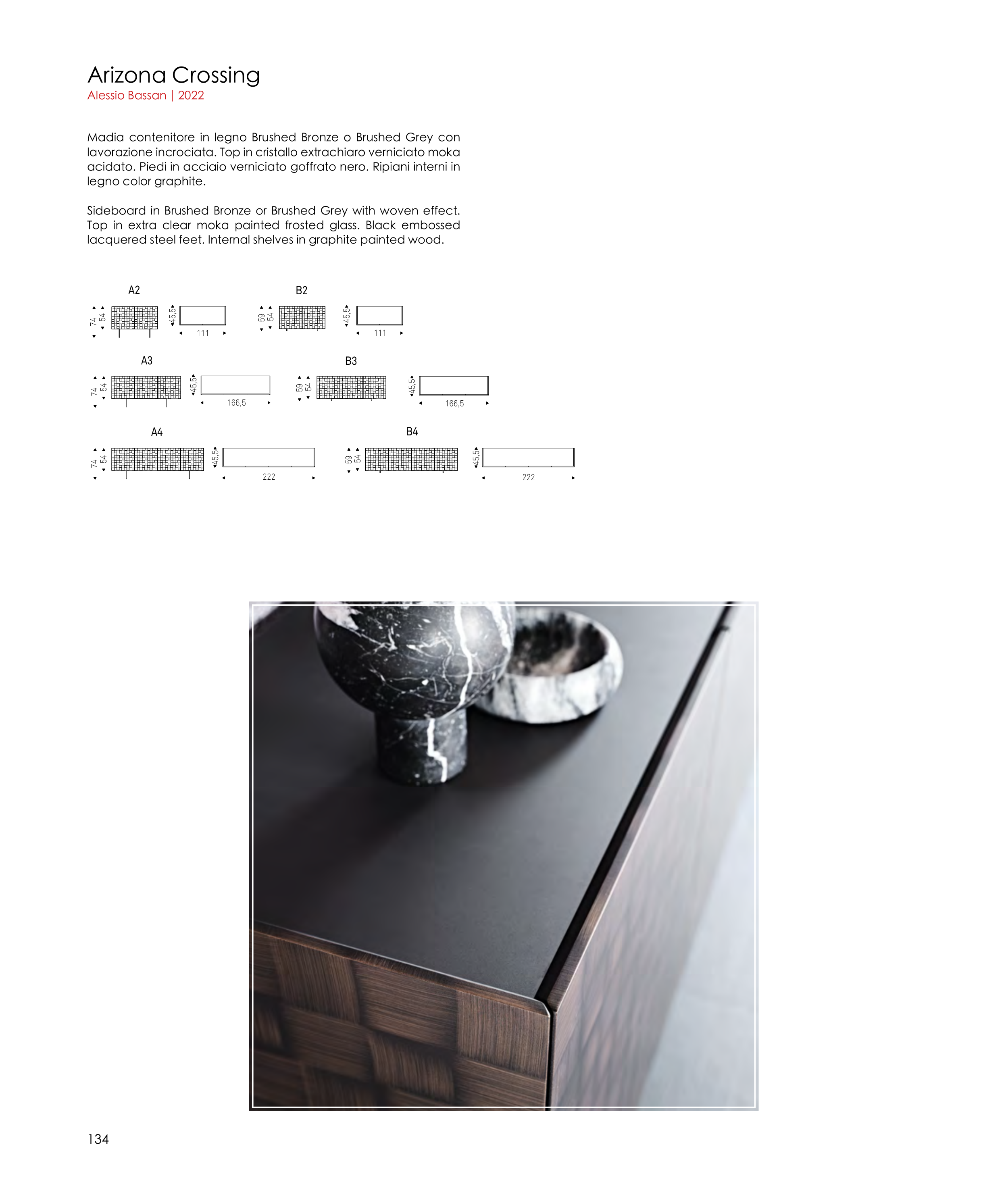 lavorazione incrociata. Top in cristallo extrachiaro verniciato moka