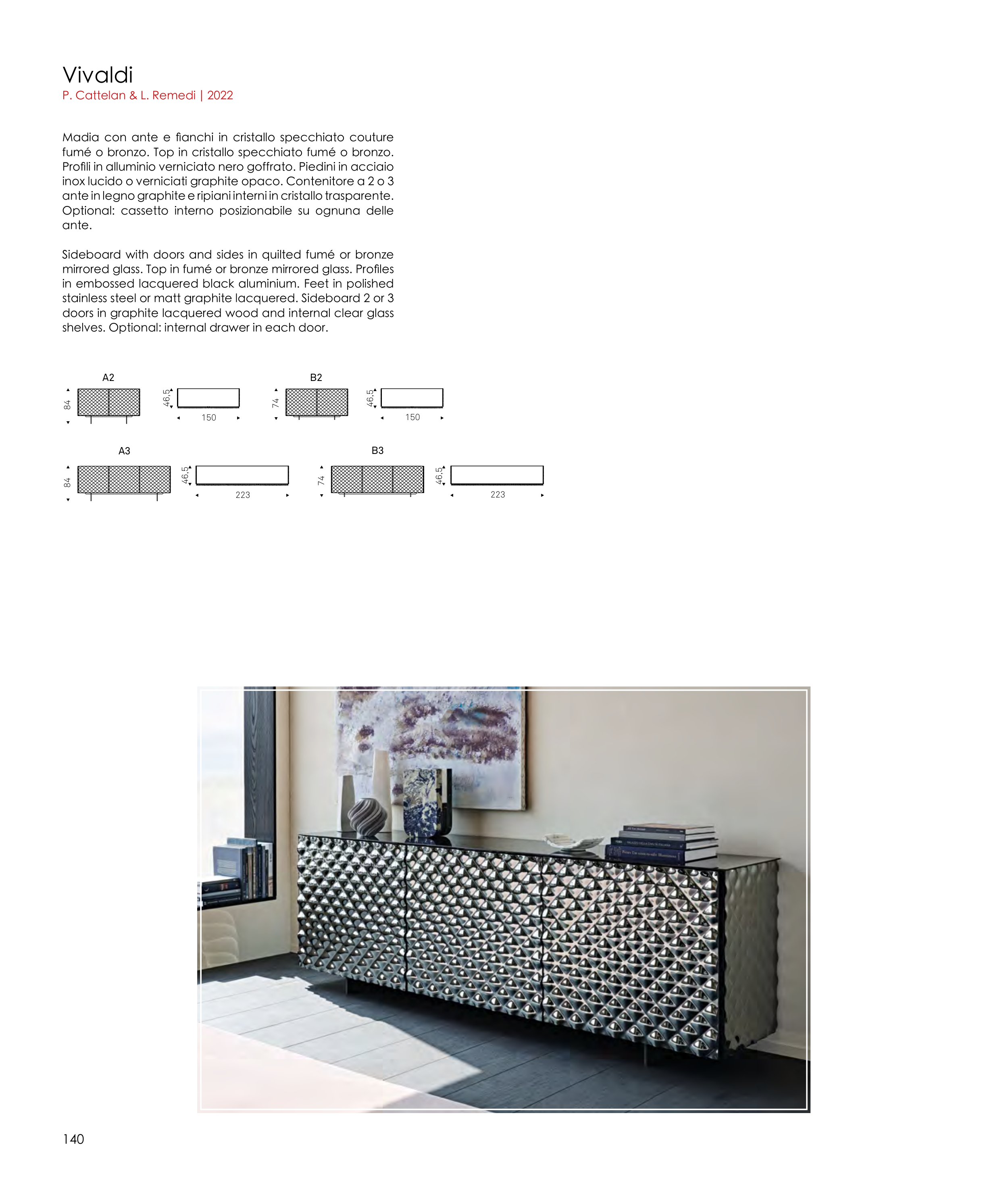 stainless steel or matt graphite lacquered. Sideboard 2 or 3