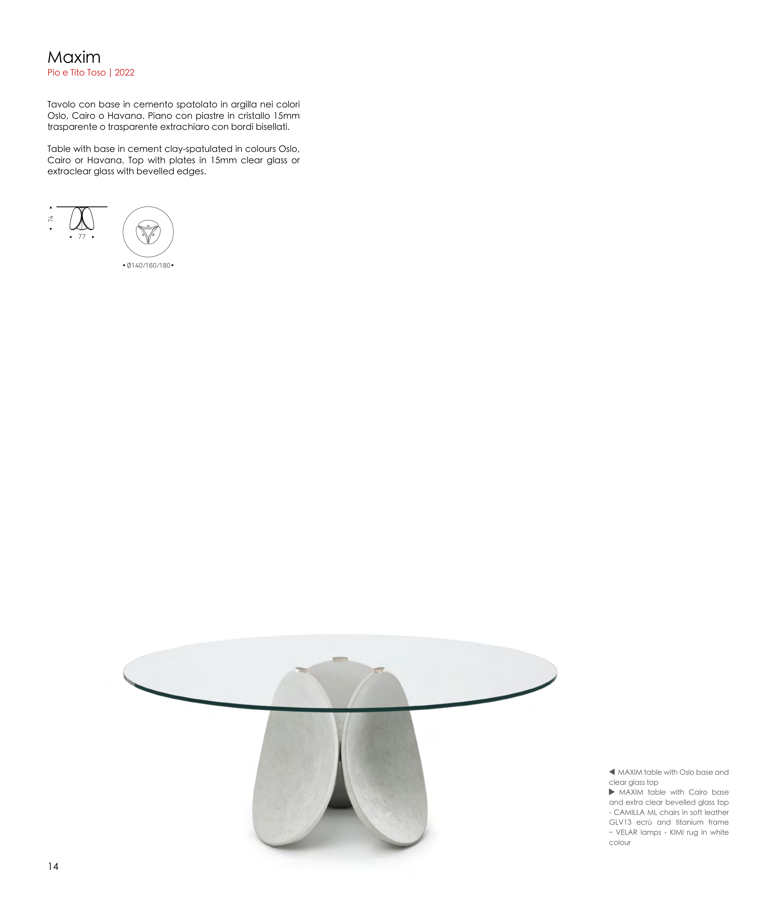 Cairo or Havana. Top with plates in 15mm clear glass or