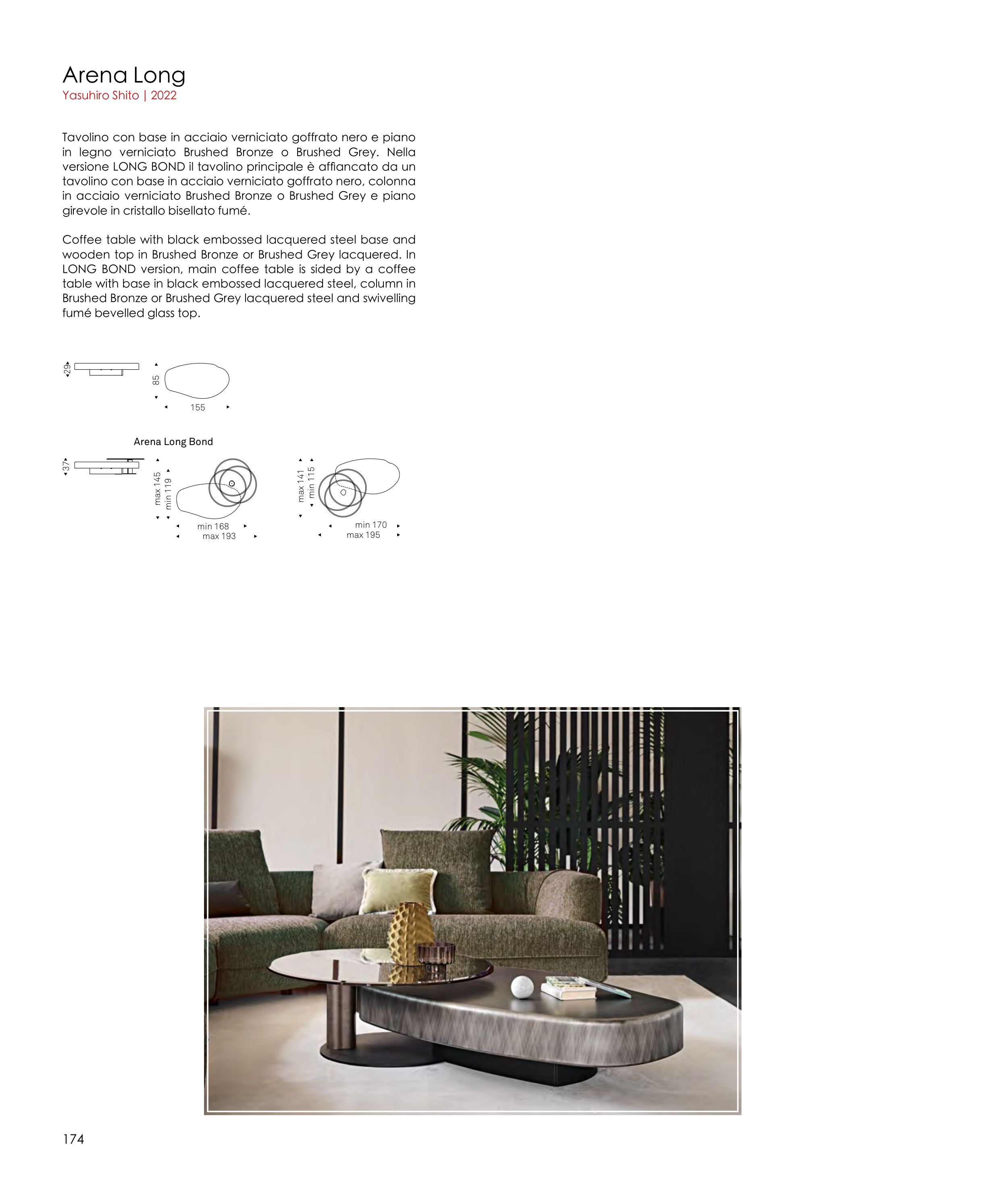 wooden top in Brushed Bronze or Brushed Grey lacquered. In