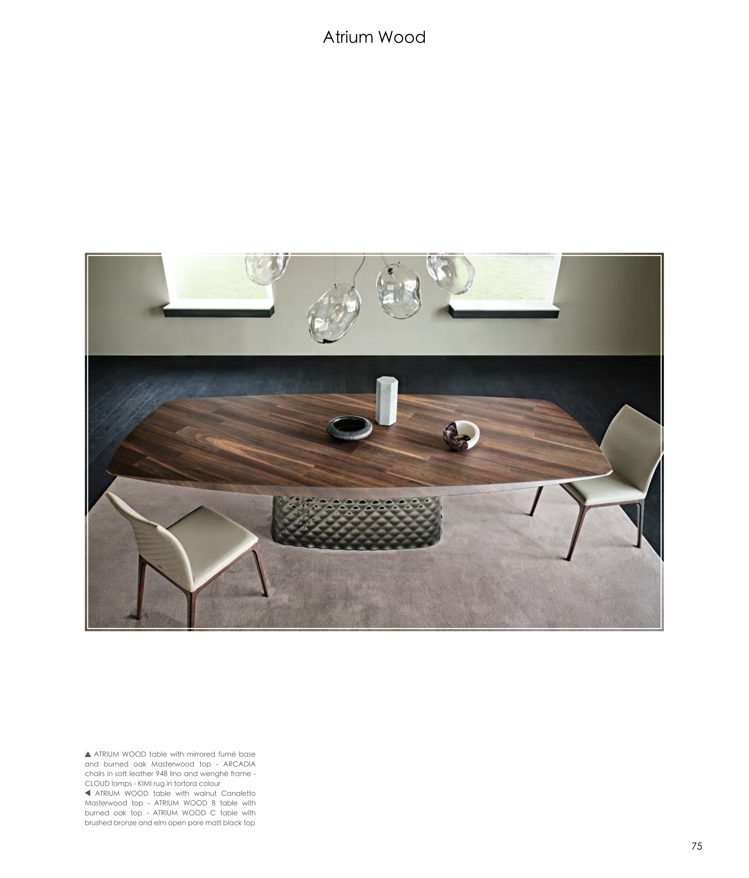 ATRIUM WOOD table with mirrored fumé base