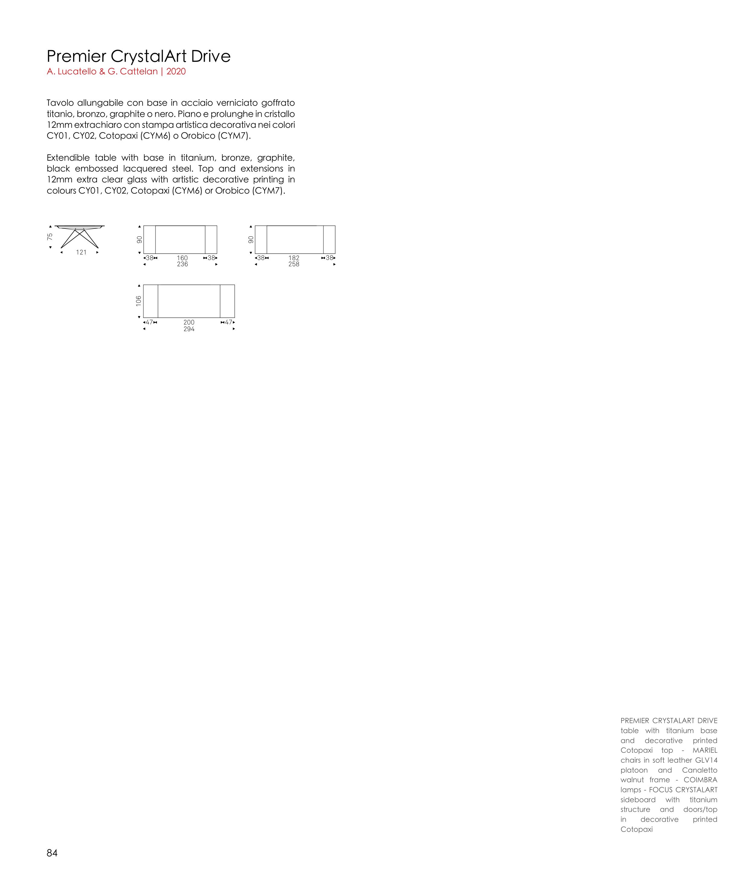 titanio, bronzo, graphite o nero. Piano e prolunghe in cristallo