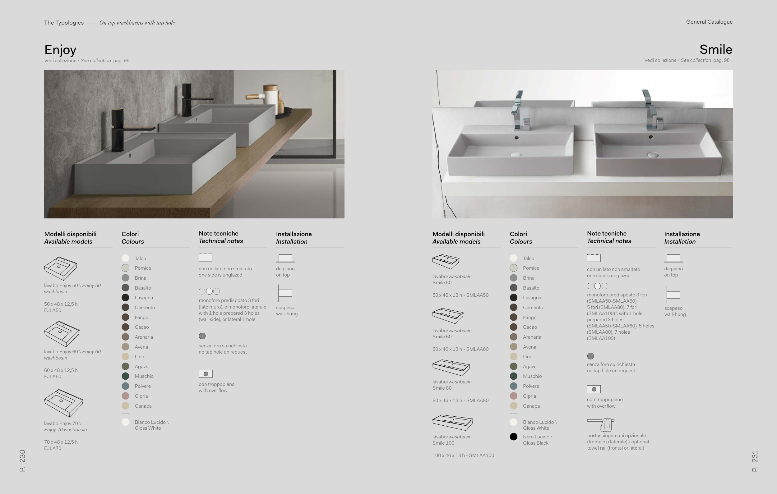 The Typologies ––––– On top washbasins with tap hole