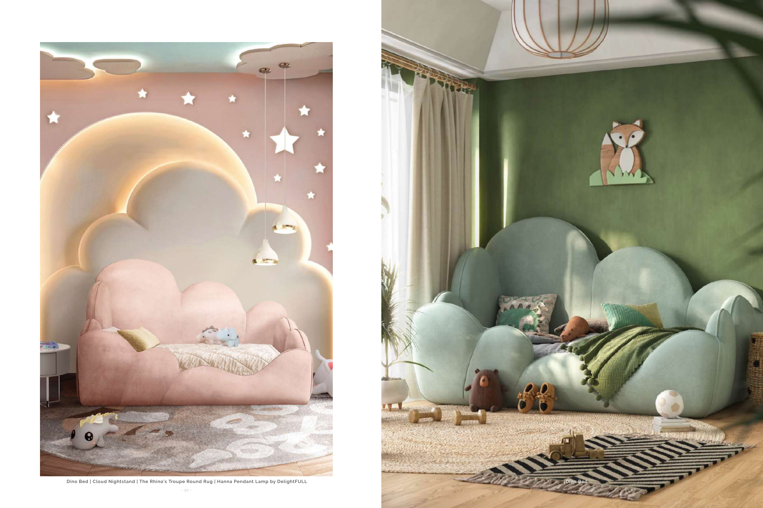 Dino Bed | Cloud Nightstand | The Rhino’s Troupe Round Rug | Hanna Pendant Lamp by DelightFULL