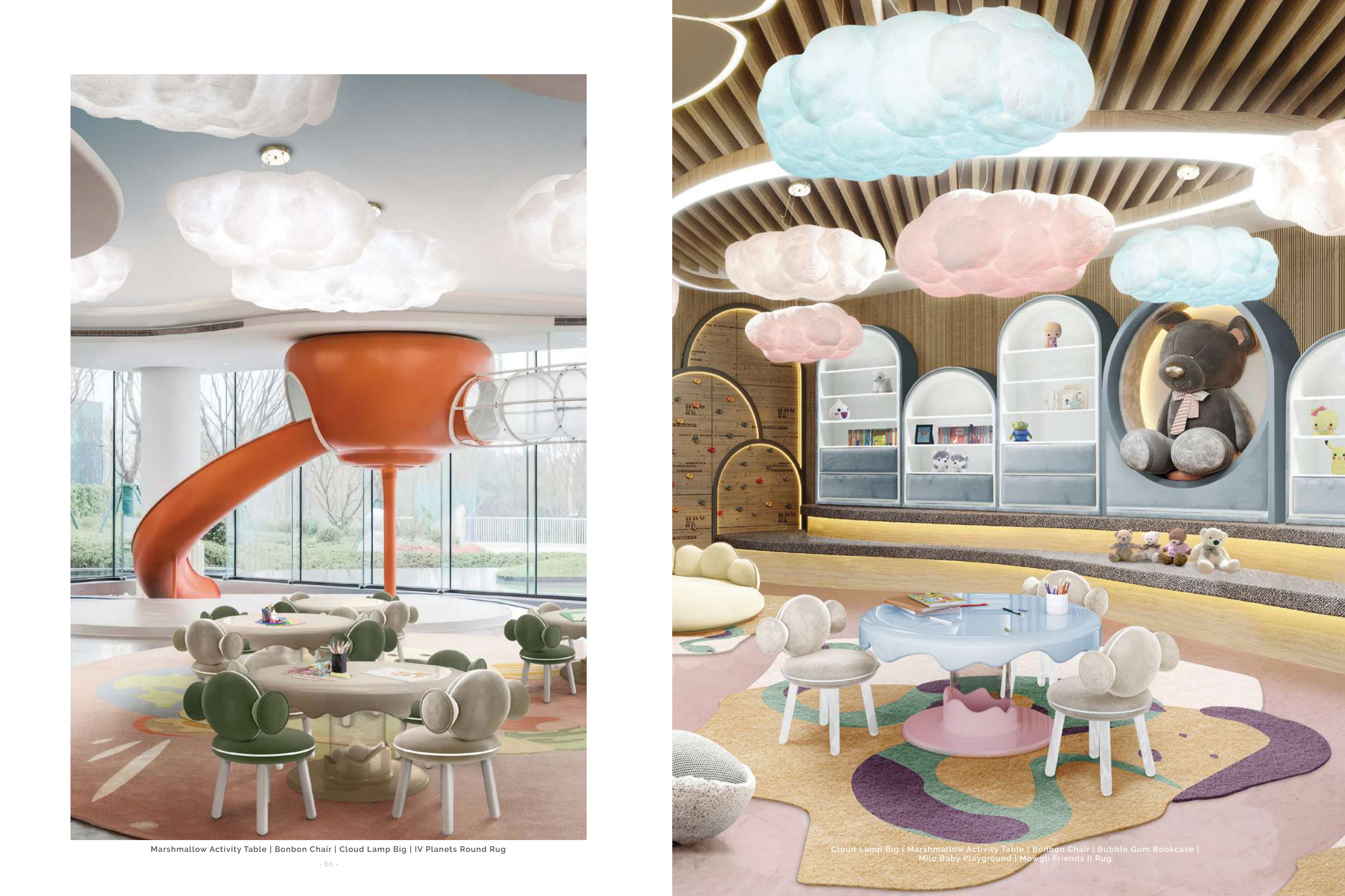Cloud Lamp Big | Marshmallow Activity Table | Bonbon Chair | Bubble Gum Bookcase |