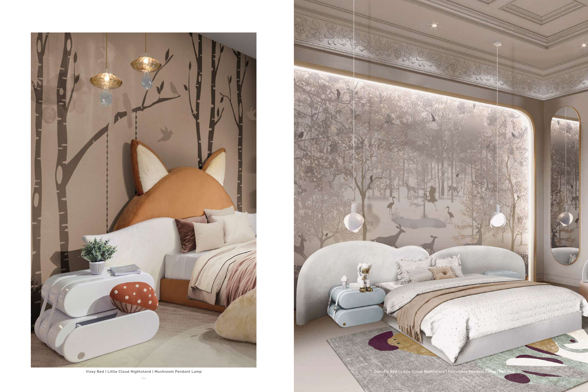 Vixey Bed | Little Cloud Nightstand | Mushroom Pendant Lamp