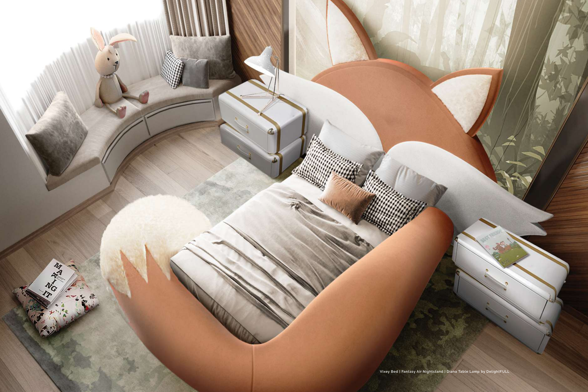 Vixey Bed | Fantasy Air Nightstand | Diana Table Lamp by DelightFULL
