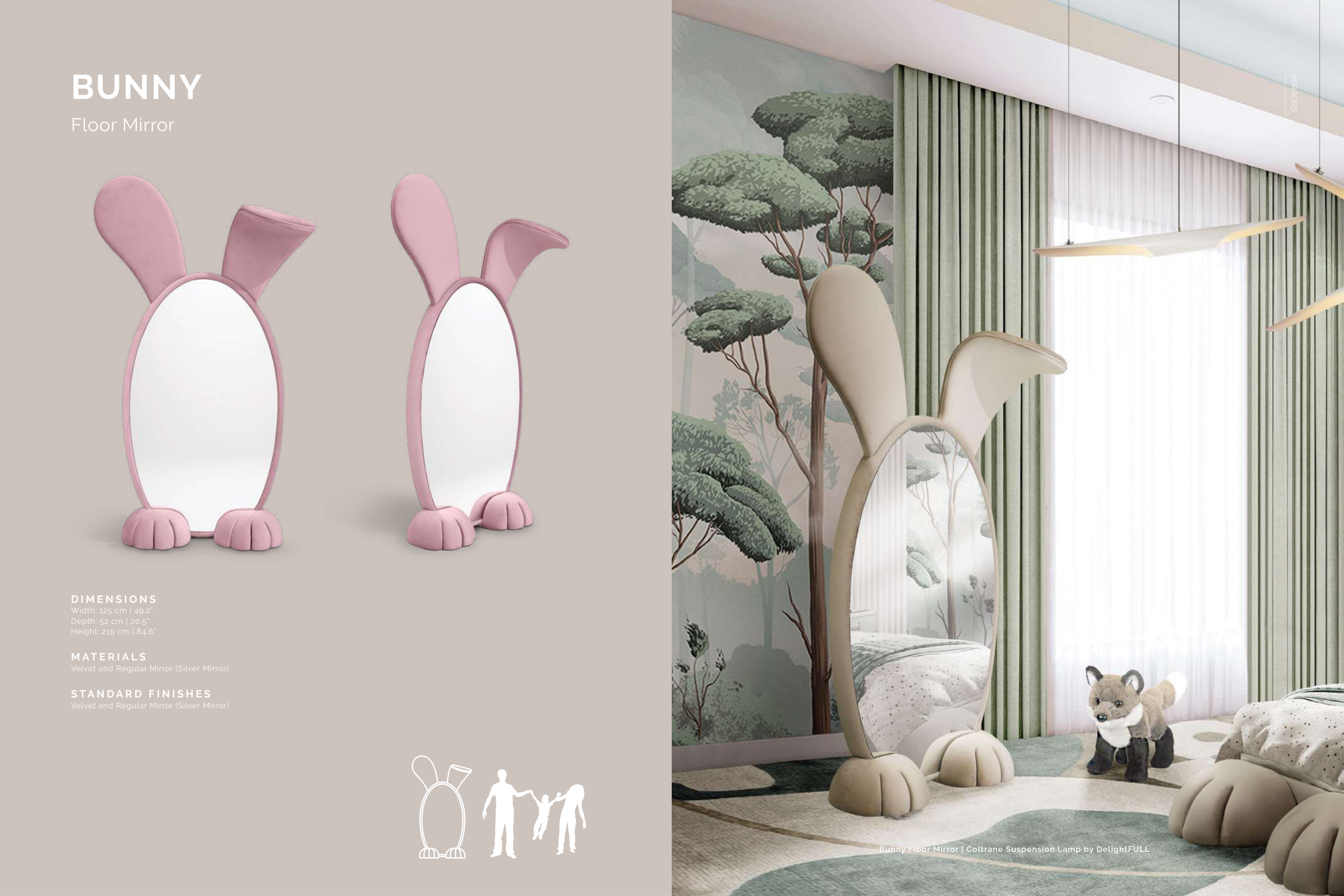 Bunny Floor Mirror | Coltrane Suspension Lamp by DelightFULL