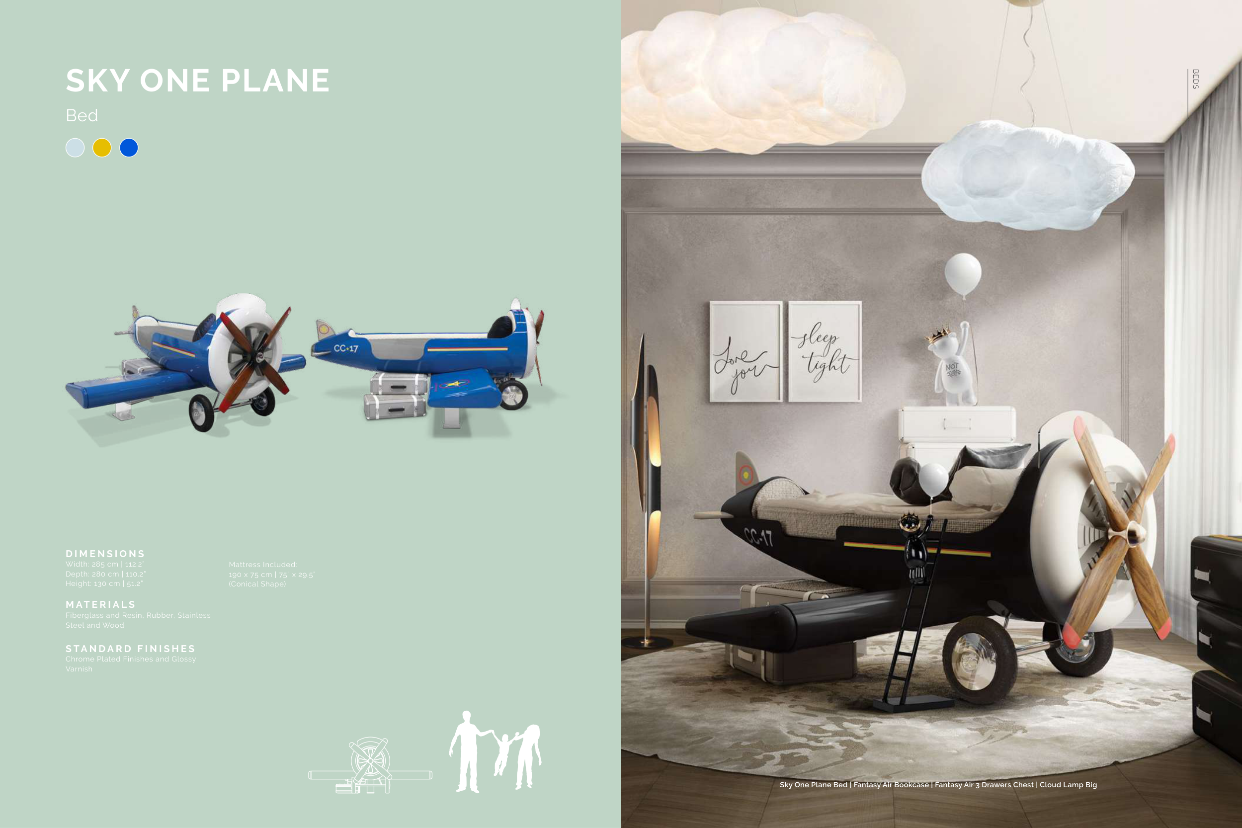Sky One Plane Bed | Fantasy Air Bookcase | Fantasy Air 3 Drawers Chest | Cloud Lamp Big