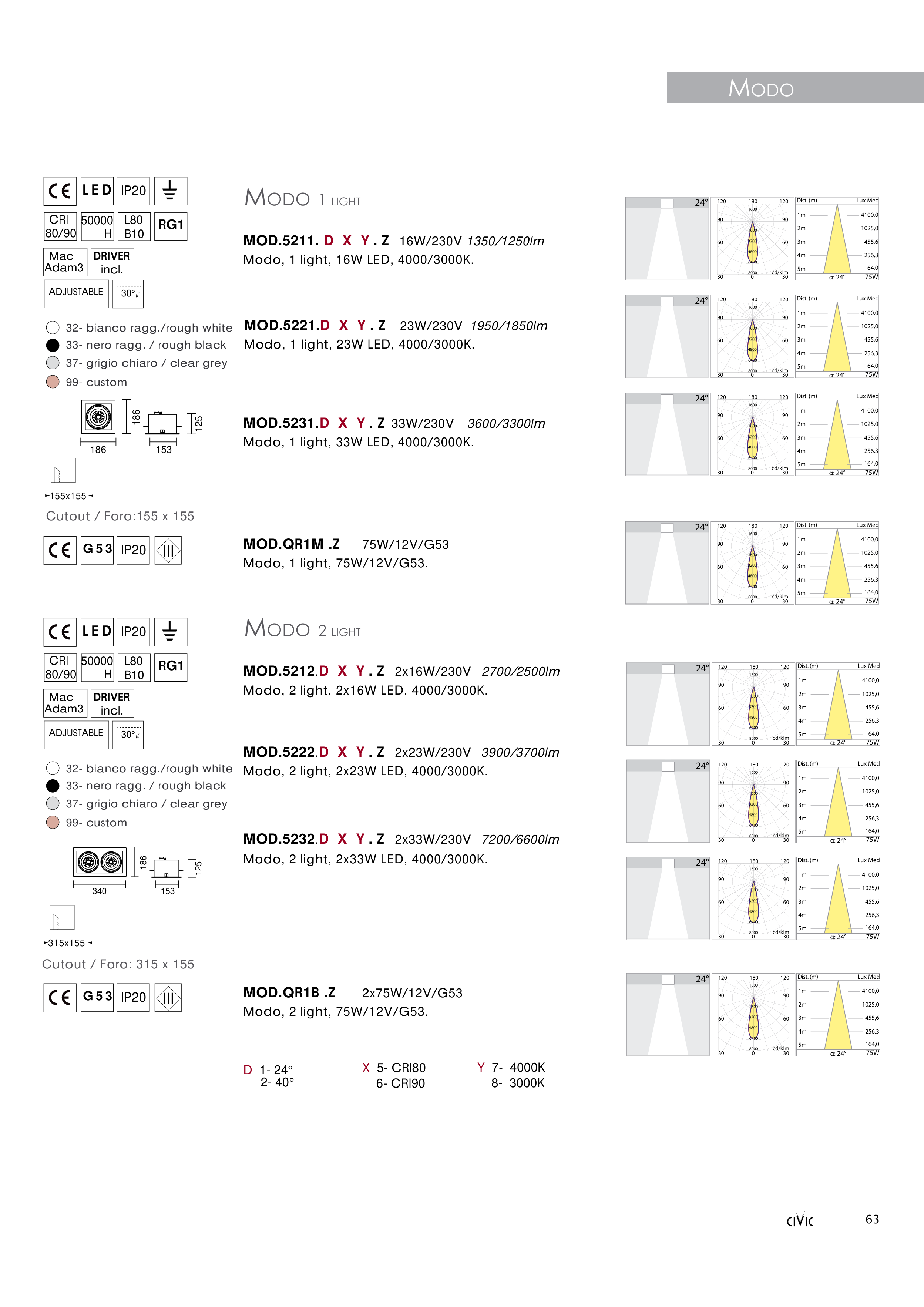MOD.5231.D X Y . Z 33W/230V 3600/3300lm