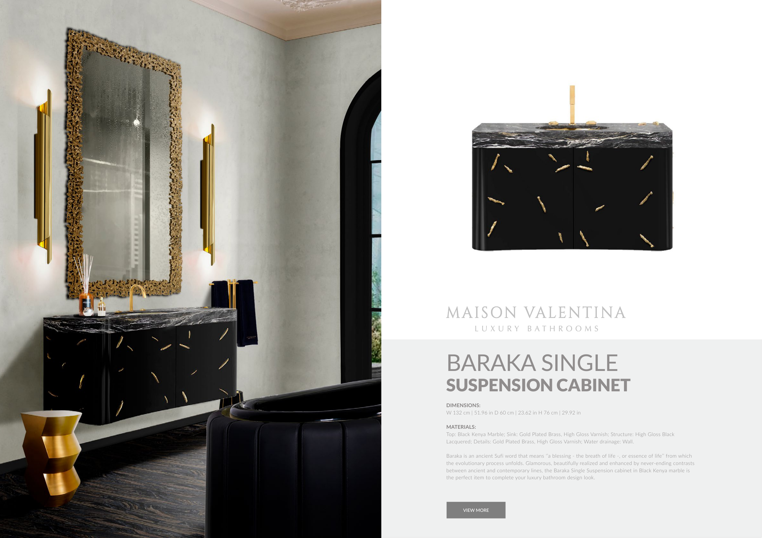 between ancient and contemporary lines, the Baraka Single Suspension cabinet in Black Kenya marble is
