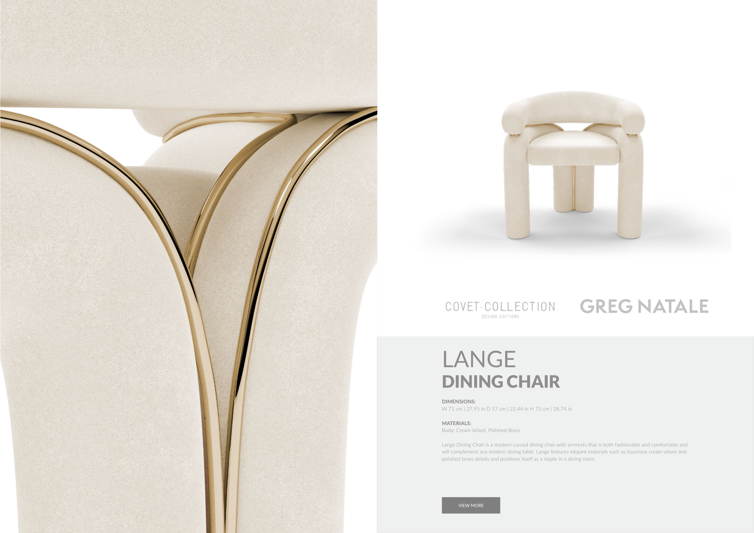 will complement any modern dining table. Lange features elegant materials such as luxurious cream velvet and