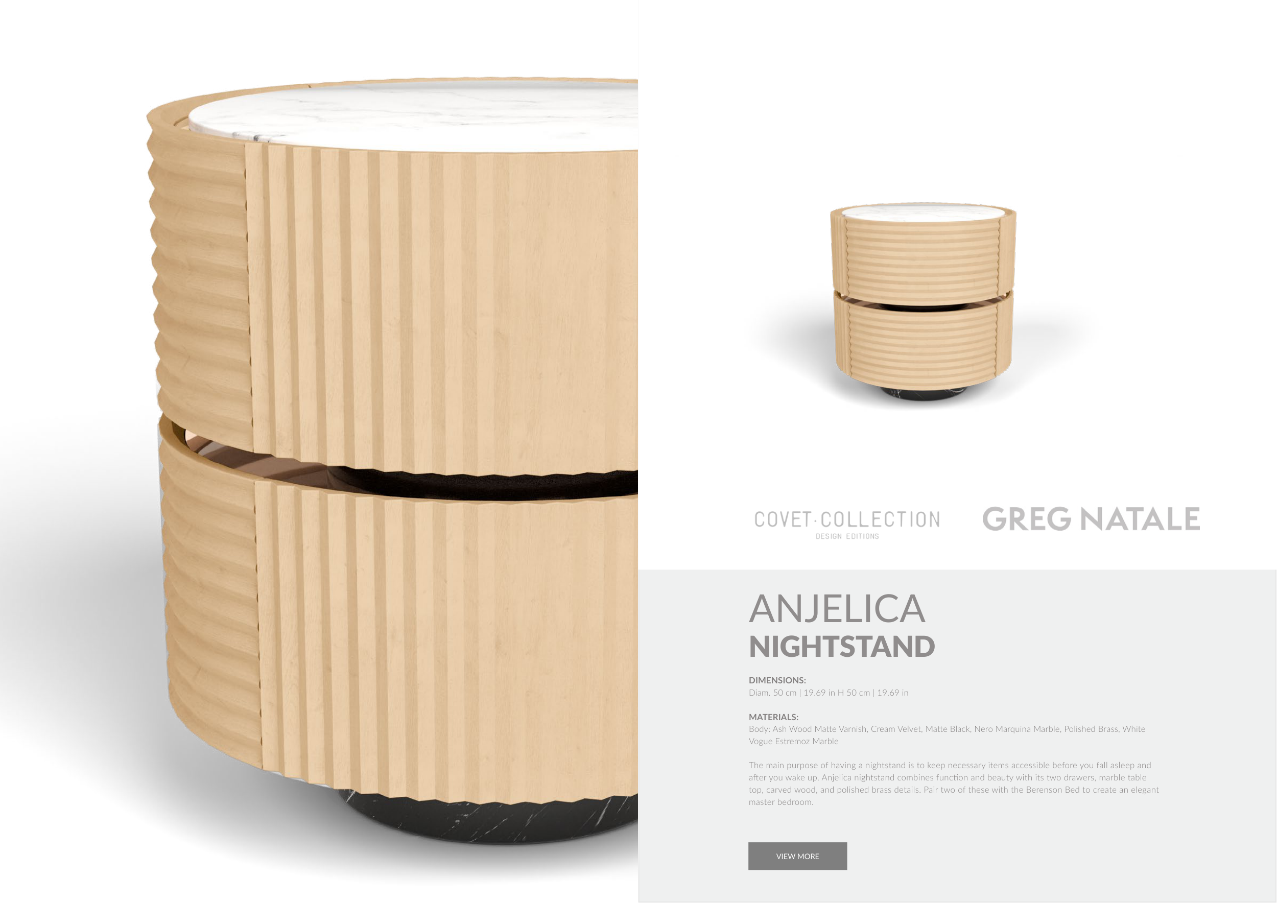 Body: Ash Wood Matte Varnish, Cream Velvet, Matte Black, Nero Marquina Marble, Polished Brass, White