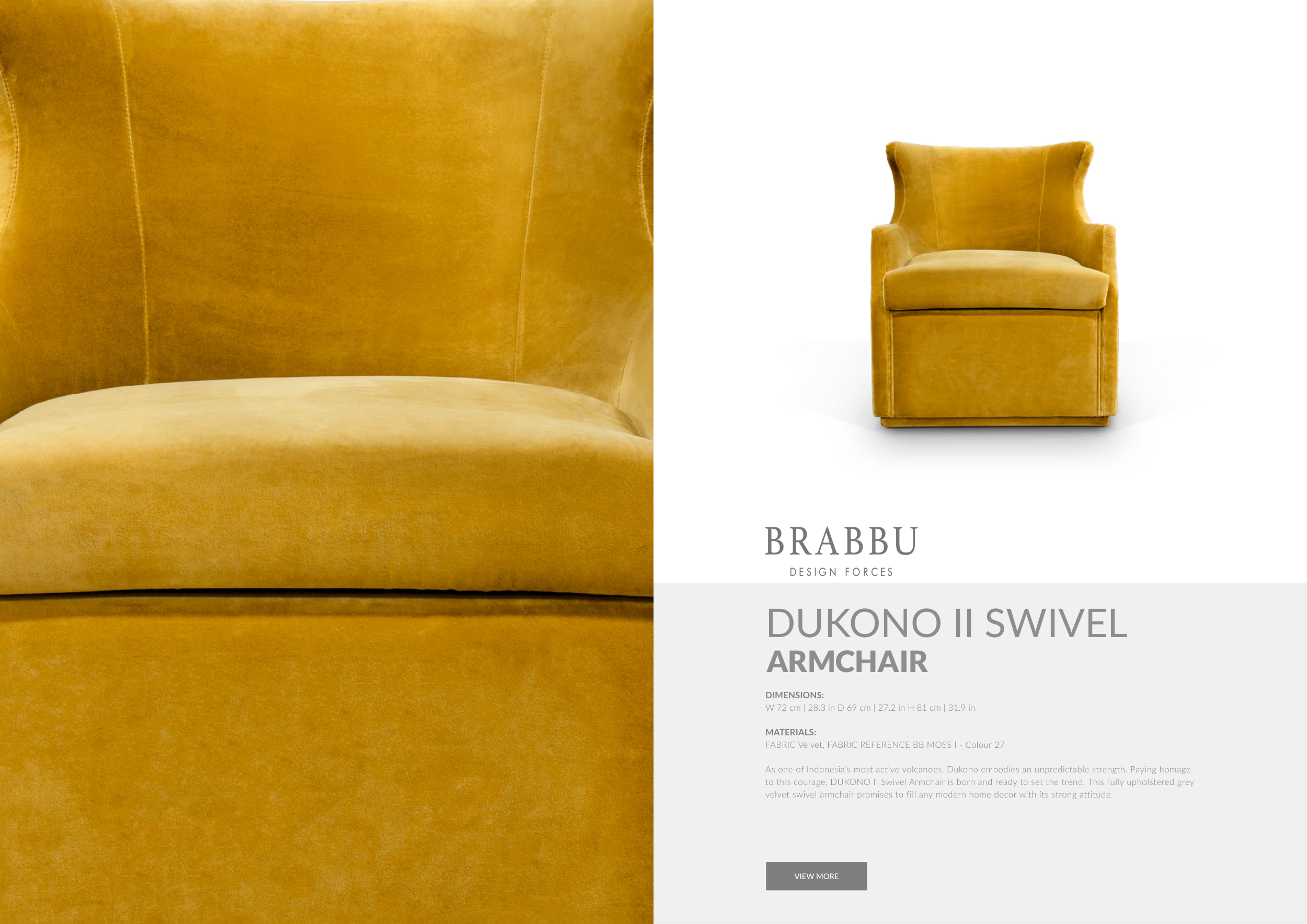 to this courage, DUKONO II Swivel Armchair is born and ready to set the trend. This fully upholstered grey