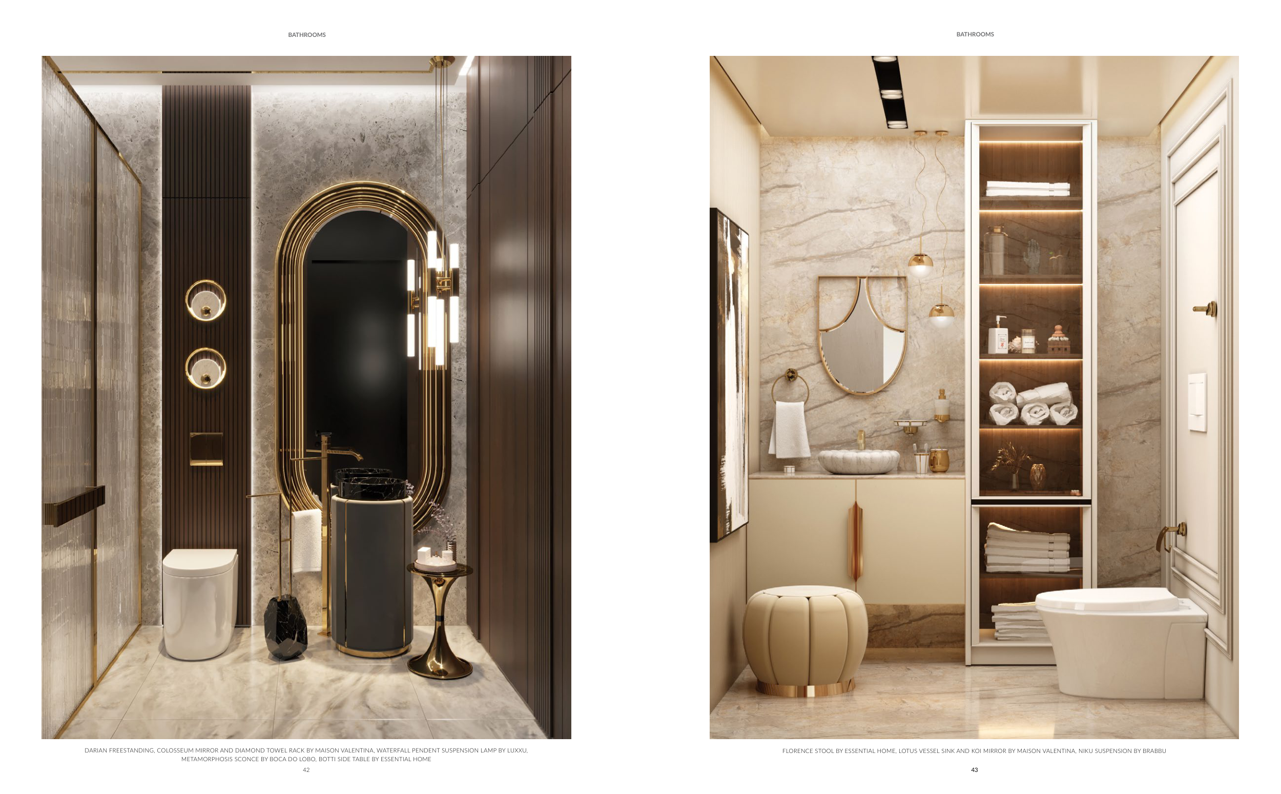 FLORENCE STOOL BY ESSENTIAL HOME, LOTUS VESSEL SINK AND KOI MIRROR BY MAISON VALENTINA, NIKU SUSPENSION BY BRABBU