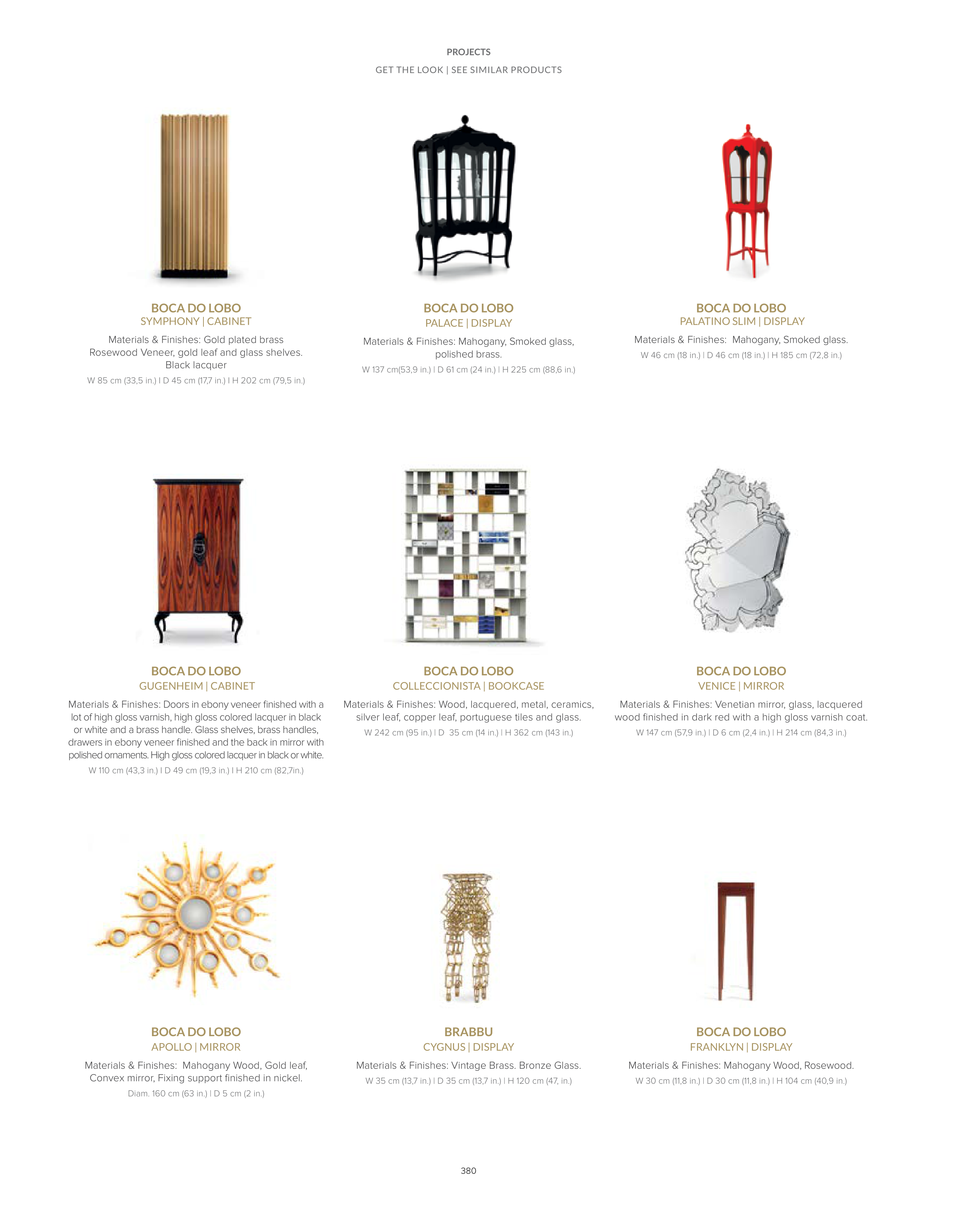 Materials & Finishes: Wood, lacquered, metal, ceramics,